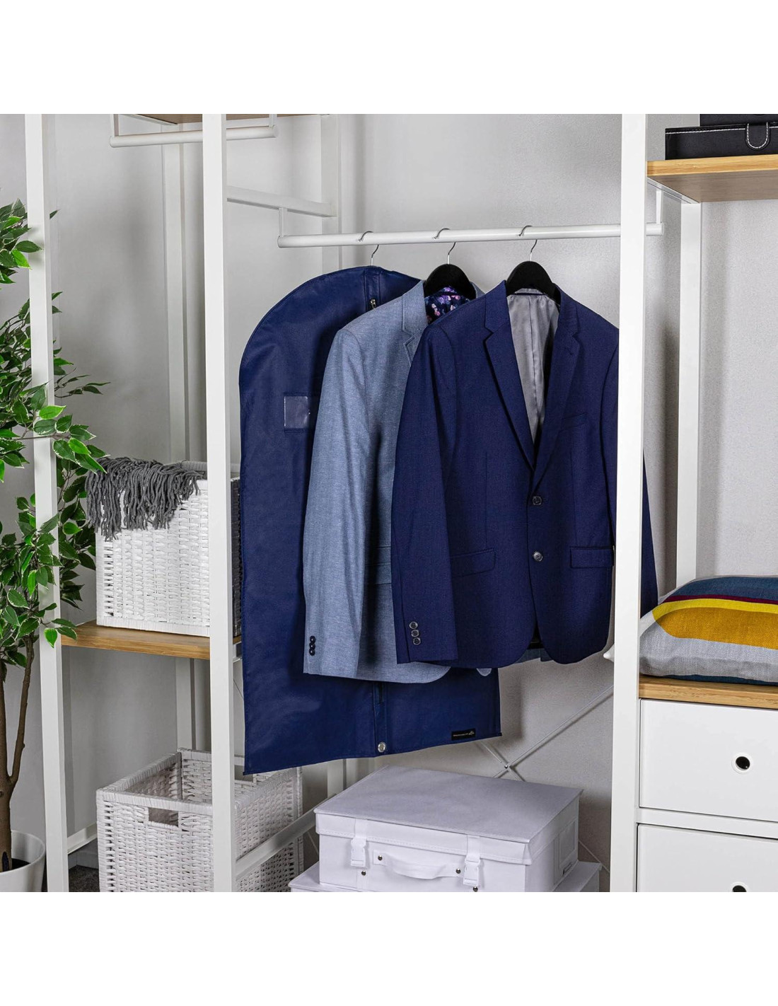 - PROTECCIÓN CONTRA EL POLVO: El material de la bolsa de traje transpirable previene daños por polvo y humedad en tu closet. Sin transferencia de color y libre de ácido, estas fundas de prendas son perfectas para almacenamiento invernal o de temporada
