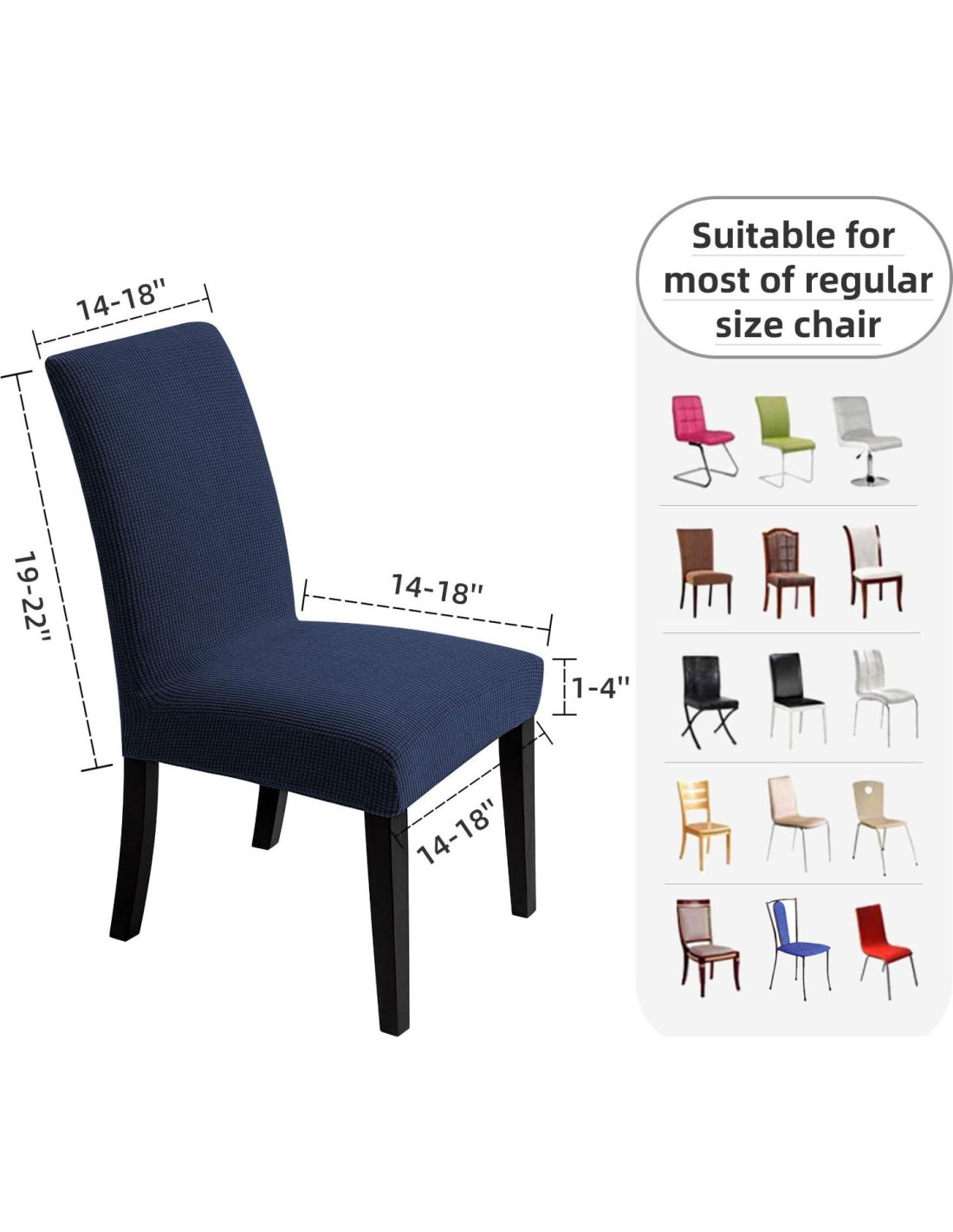 - [Tamaño Adecuado para Sillas] Estas fundas son de talla única, nuestras fundas se ajustan bien a sillas de comedor de respaldo normal y alto, altura del respaldo 20-24 pulgadas (50-60 cm), longitud del asiento 14-20 pulgadas (36-50 cm), ancho del asiento 14-20 pulgadas (36-50 cm). Por favor, verifica la guía de medidas en la imagen del artículo antes de realizar el pedido. Ajuste flexible y fácil de meter, sin correas y elásticas en la parte inferior para que se mantenga en su lugar sin moverse.