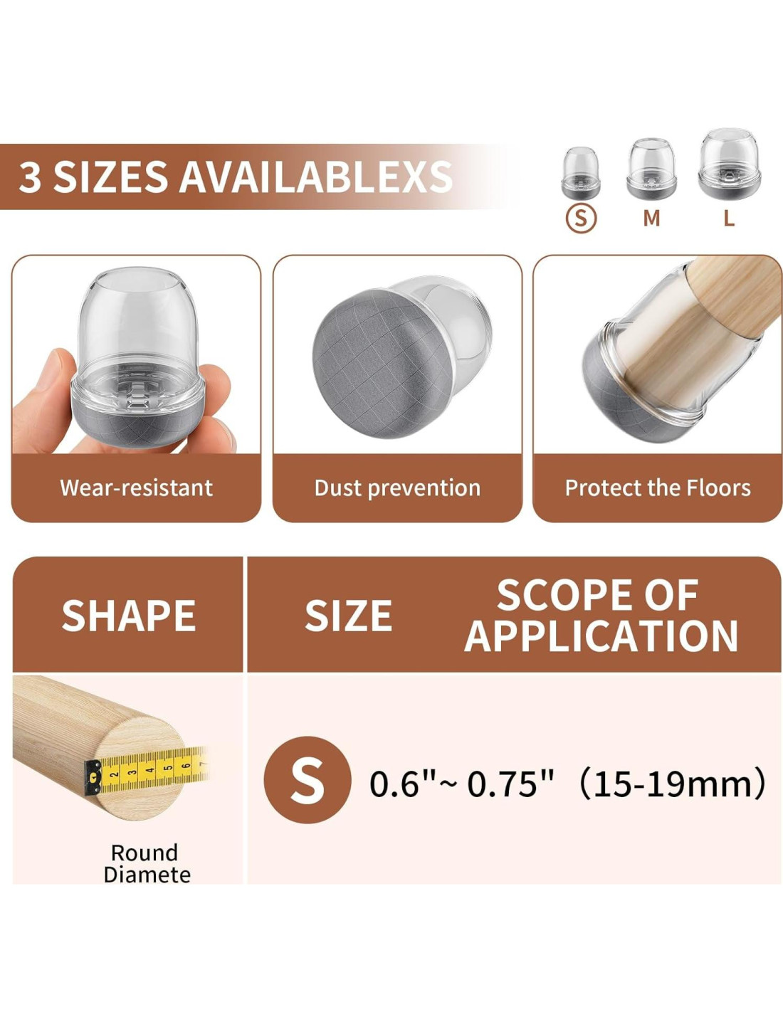 - [Rango de Tamaño] - Incluye 24 tapas de silicona de tamaño S redondas para ajustarse a un diámetro redondo de 0.6" a 0.75" (15-19mm). Asegúrate de medir las patas de tu silla antes de ordenar estas.