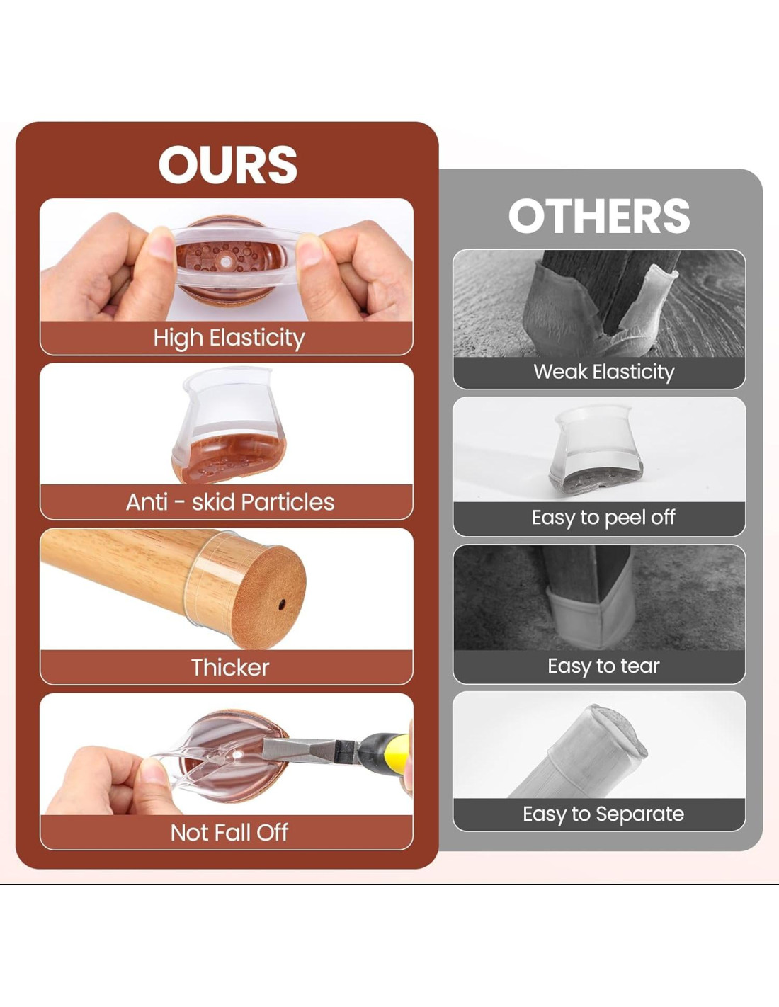 - [Grueso y No Se Rasga] Comparado con otros protectores de suelo para patas de sillas de silicona en el mercado, nuestros protectores de suelo para sillas tienen la pared interior engrosada a 2mm. Tiene alta elasticidad y no se cae, es grueso y no se rasga, la vida útil será más larga.