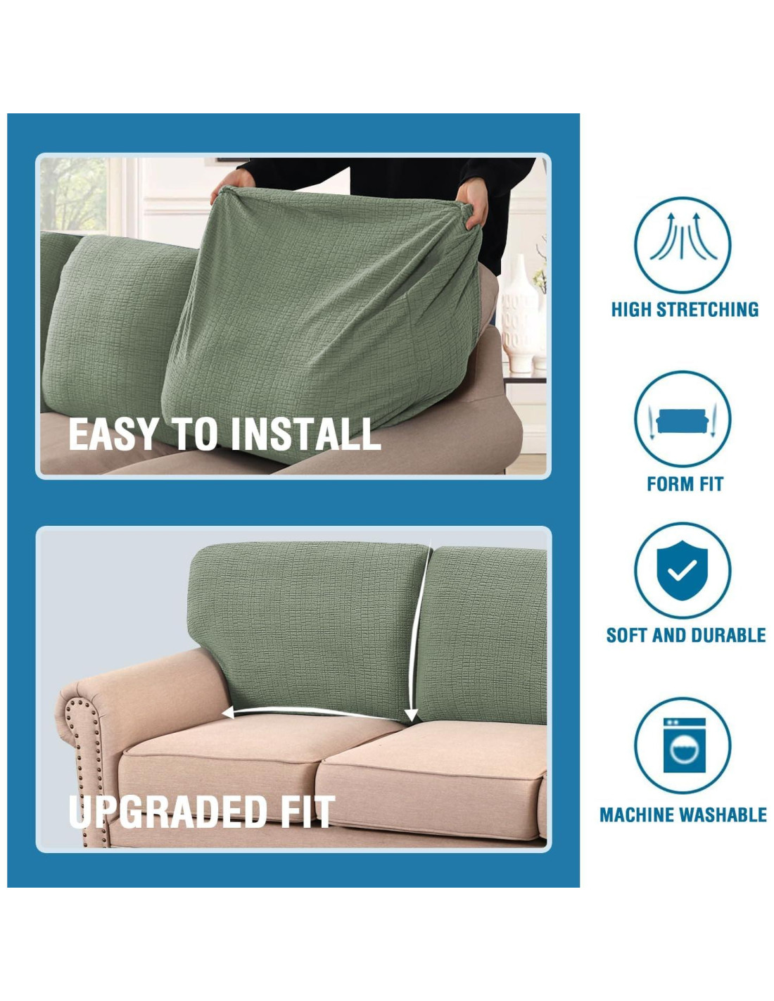 - AJUSTE PERFECTO: Juego de Fundas de Cojín de Respaldo de 3. Esta funda de cojín innovadora está hecha de tela jacquard de punto duradera y de alto estiramiento. Funda de Respaldo de Sofá (se adapta a un área total de apoyo entre 73-82 inches (185,42-208,28 cm)). Presenta un tamaño único que se adapta a la mayoría, mida amablemente antes de ordenar, tanto para cojines en T como para cojines de caja
