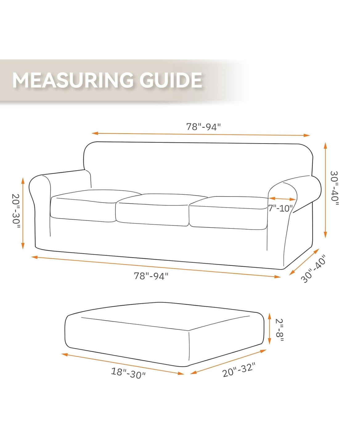 - Tela de alta calidad: Hecha de tela elástica de alta calidad de 80 % poliéster y 20 % spandex; adecuada para la mayoría de los tipos de sofás; cómoda; duradera y resistente a las arrugas; cada pieza contiene una funda y 3 fundas individuales para cojines.