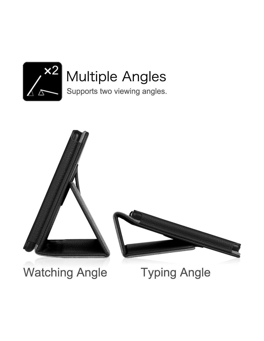 - La cubierta plegable transforma la funda en un soporte con dos ángulos de visualización cómodos: ángulo de visualización y ángulo de escritura.