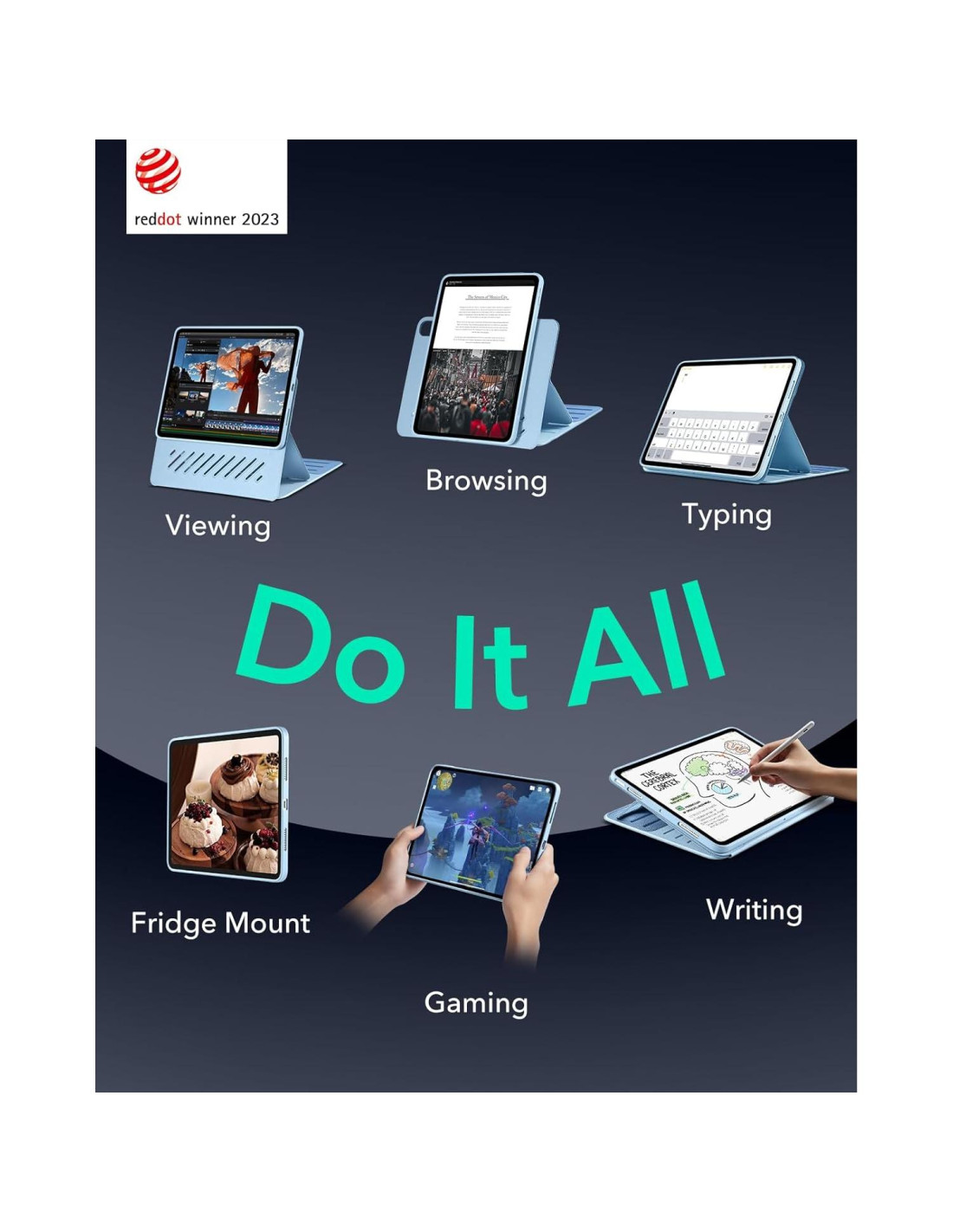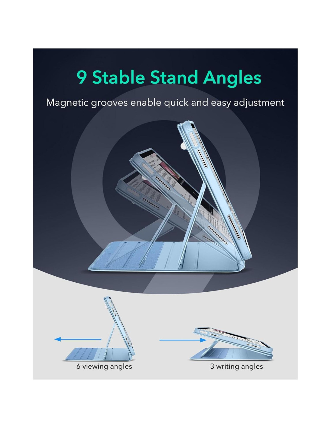 - Versatilidad Poderosa: logra hasta 9 ángulos diferentes, 6 para ver y 3 para escribir, a través de los soportes dobles y 6 ranuras magnéticas, luego despréndelo instantáneamente para jugar de manera práctica o para adjuntarlo magnéticamente a tu nevera