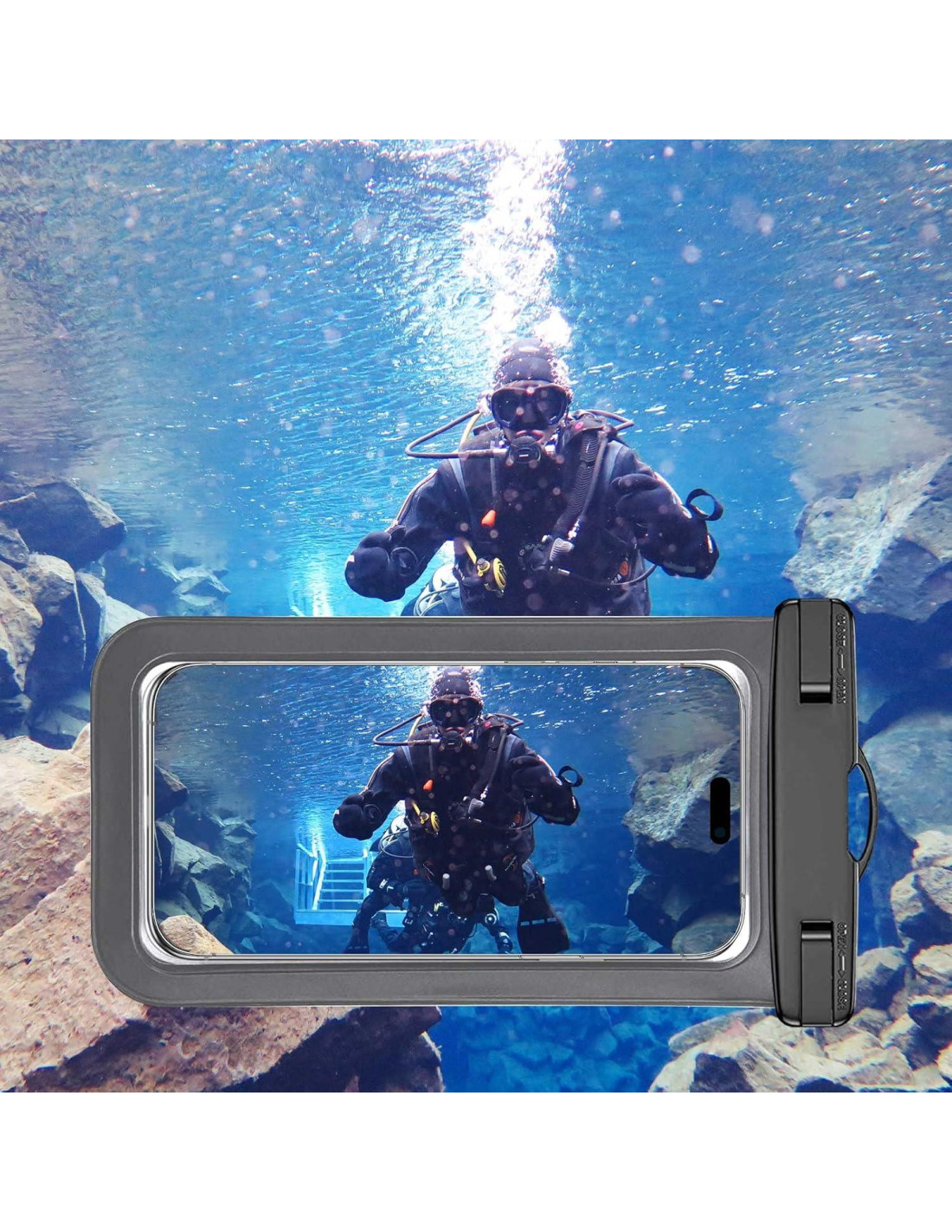 - Amigable con la Pantalla Táctil: La funda impermeable se adapta a todos los teléfonos inteligentes de hasta 7.5" de tamaño diagonal. Ventana de PVC clara que te permite tomar fotos convenientemente incluso bajo el agua. Captura el mundo submarino tal como lo ves.