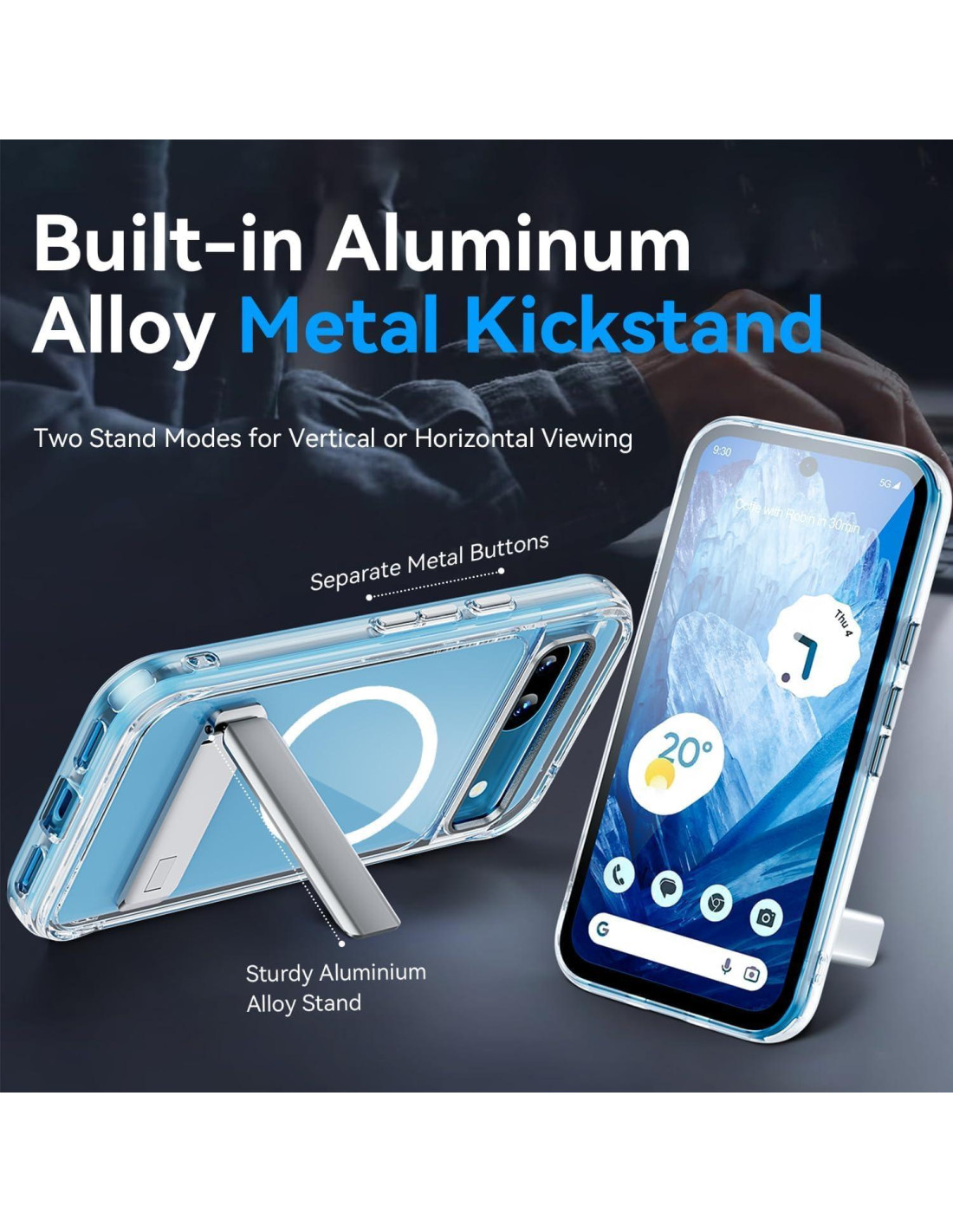 - [Dos Formas de Soporte] El soporte de metal de la funda para google pixel 8a está hecho de aluminio de primera calidad, resistente y funciona perfectamente en ambas formas de soporte horizontal y vertical. Le permite obtener un ángulo de visión más cómodo. Reduce la frecuencia de mirar hacia abajo en la pantalla del teléfono para evitar lastimarse la espalda y el cuello