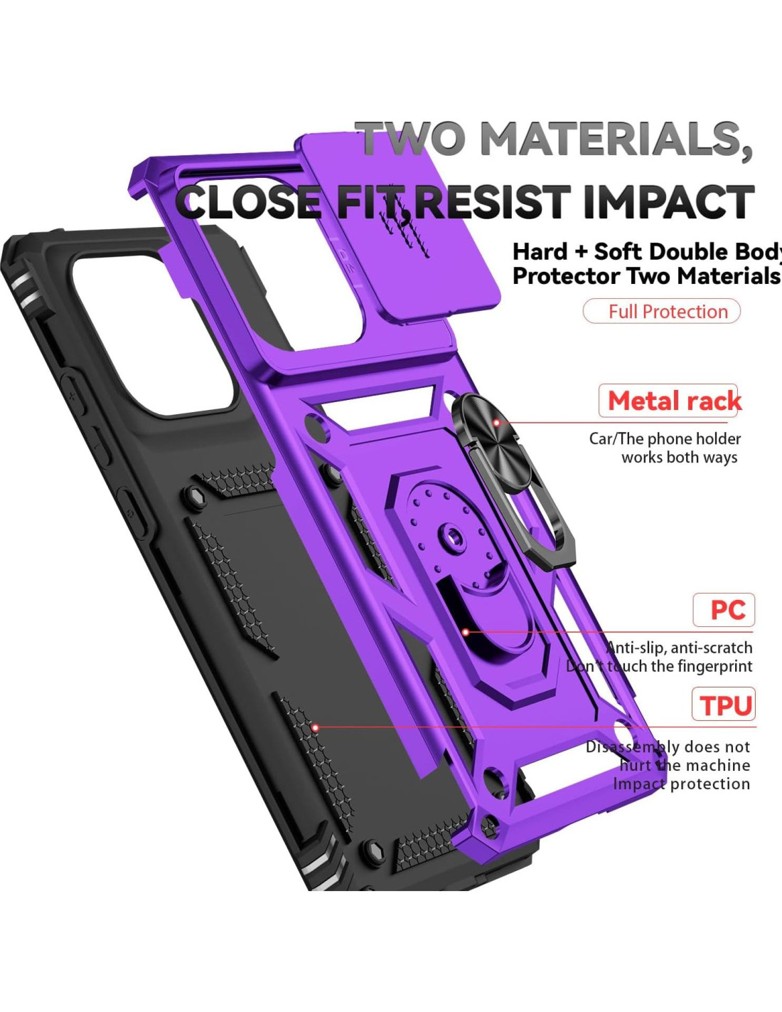 - Características especiales: Protección contra caídas de grado militar de segunda generación, hoja magnética metálica incorporada que se puede adjuntar de manera estable al soporte magnético para teléfono, cubierta deslizante para cámara, protección de cámara deslizante antiarañazos mejorada, soporte rotable de 360, no es necesario comprar otro soporte, con soporte oculto que funciona perfectamente tanto en ángulos de soporte vertical como horizontal estables. Conveniente para leer, ver películas, jugar y hacer videollamadas con tus amigos.
