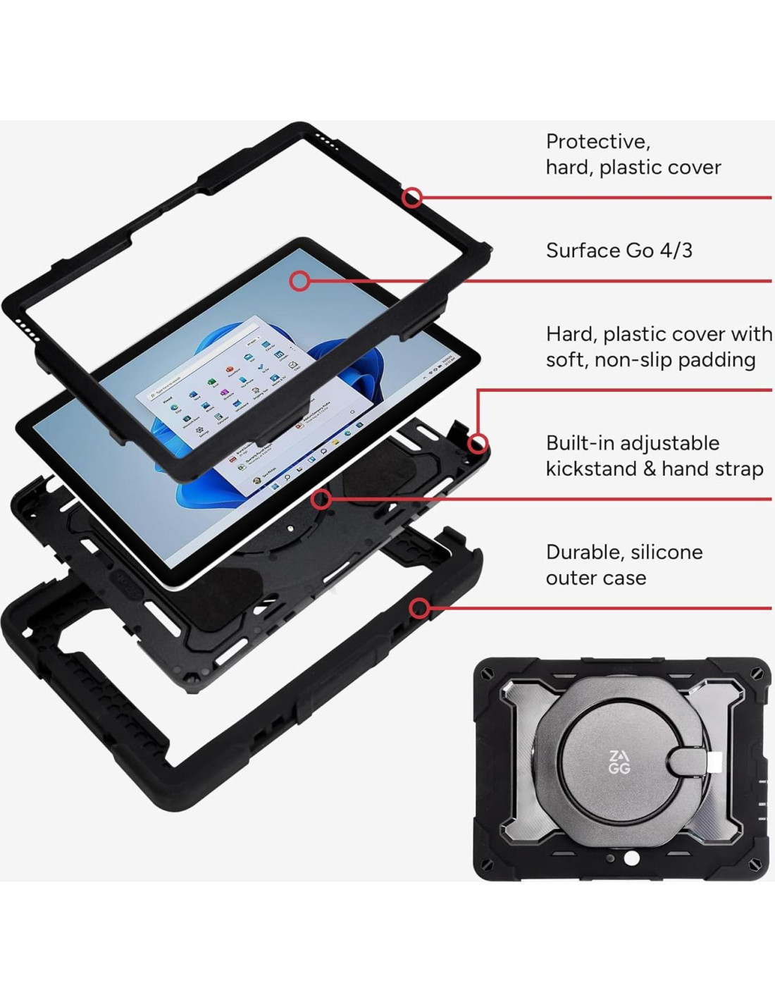 Experimenta la protección y conveniencia definitivas con la Funda Rugged de ZAGG para tu Microsoft Surface Go 4/3. Esta funda está meticulosamente diseñada para aquellos que exigen una protección robusta sin sacrificar la funcionalidad. Ha sido rigurosamente probada para caídas para cumplir con los estándares MIL-STD 810G 516, asegurando que tu dispositivo soporte caídas de hasta 6.5 pies (1,98 m). La construcción es una mezcla de policarbonato de alta resistencia y silicona absorbente de impactos, con esquinas y bordes reforzados que envuelven de manera segura tu dispositivo.