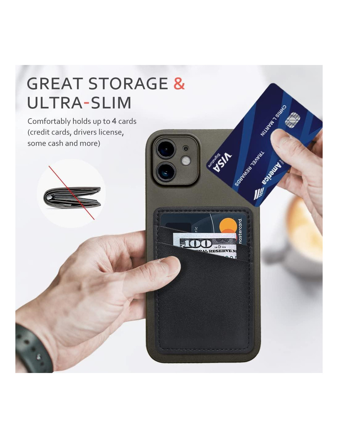 - Diseño de Billetera para Teléfono con Doble Ranura: El diseño de doble ranura permite un acceso rápido. Almacena cómodamente hasta 4 tarjetas y efectivo. Te permite clasificar tus artículos fácilmente.