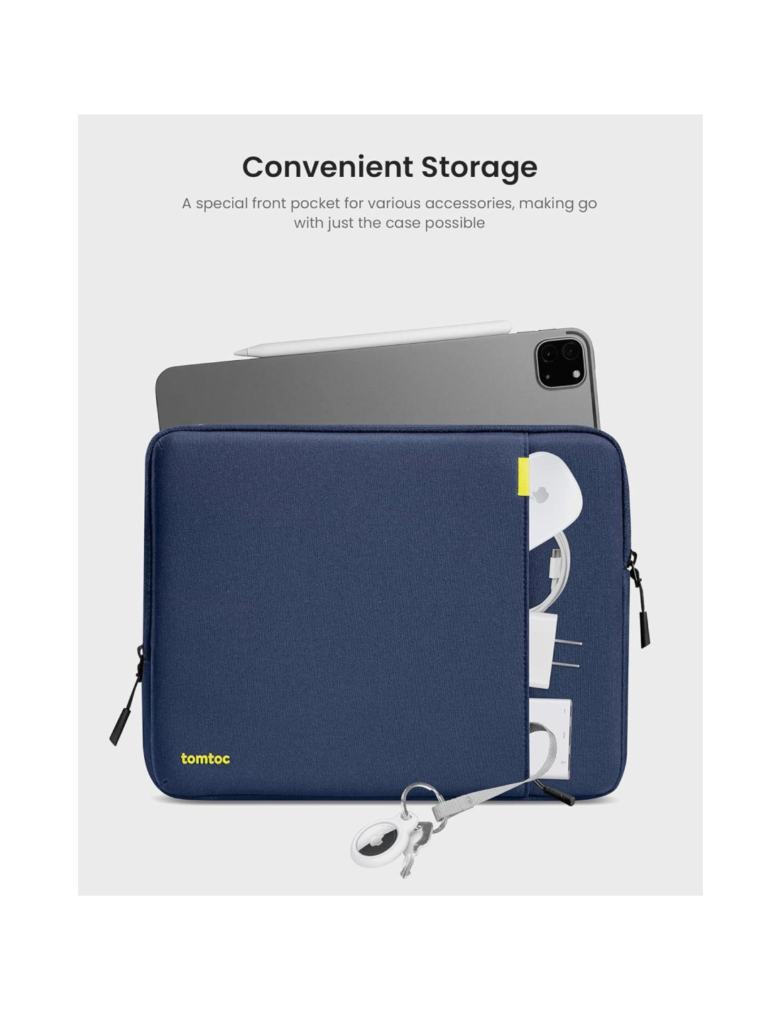 - Protección de Grado Militar: Para combatir las situaciones más difíciles, desde caídas hasta golpes y vibraciones, tomtoc propuso el concepto de protección 360 y diseñó la funda para tableta con Tecnología CornerArmor, bordes de alta resiliencia y acolchado suave de alta densidad. Pasó la Prueba de Caída de Estándar Militar mientras mantenía un diseño elegante
