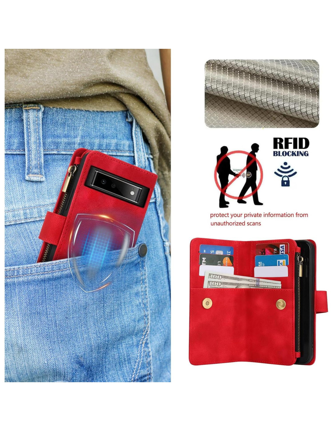 - Bolsillos para tarjetas y cremallera y correa: Esta funda incluye 9 bolsillos para tarjetas + 2 bolsillos para efectivo + 1 bolsillo con cremallera + 1 billetera magnética para dinero o auriculares. También tiene mucho espacio para tu identificación, tarjetas de crédito, licencia de conducir, billetes, monedas y llaves.