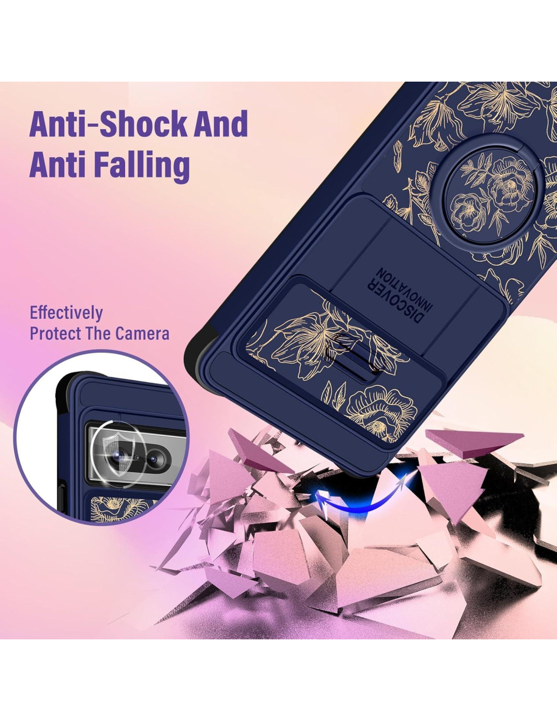 - Cubierta de Cámara Deslizante: El diseño único de la cubierta de cámara deslizante de esta funda para Google Pixel 7 es realmente suave y puede fijarse en una posición determinada, protege la lente de la cámara de tu teléfono de golpes y rasguños.