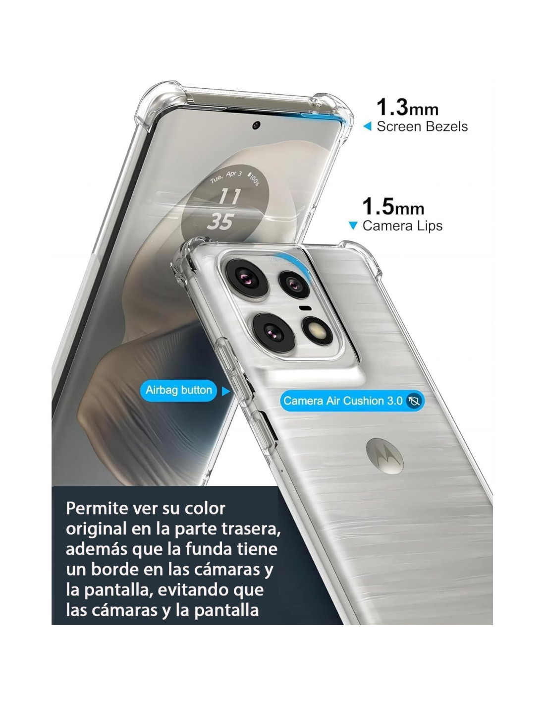 - Su diseño con micro puntos en el interior previene la apariencia húmeda y pegajosa, tan común entre las fundas transparentes, ayudando así a mantener el hermoso diseño de tu teléfono Motorola Moto Edge 50 Pro / Edge 50.