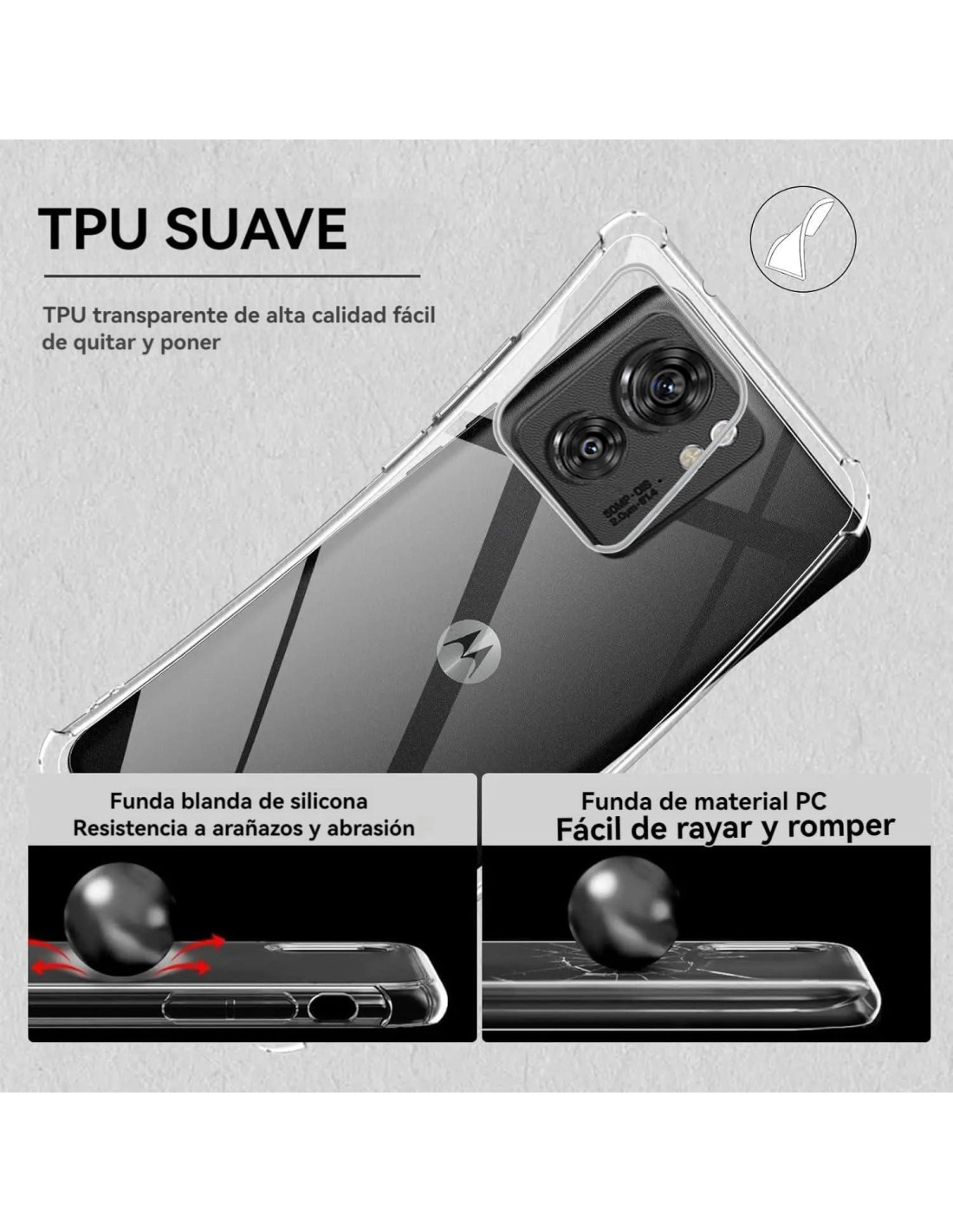 - Su diseño con micro puntos en el interior previene la apariencia húmeda y pegajosa, tan común entre las fundas transparentes, ayudando así a mantener el hermoso diseño de tu Motorola MOTO Edge 40 5G / Edge 2023 5G (us).