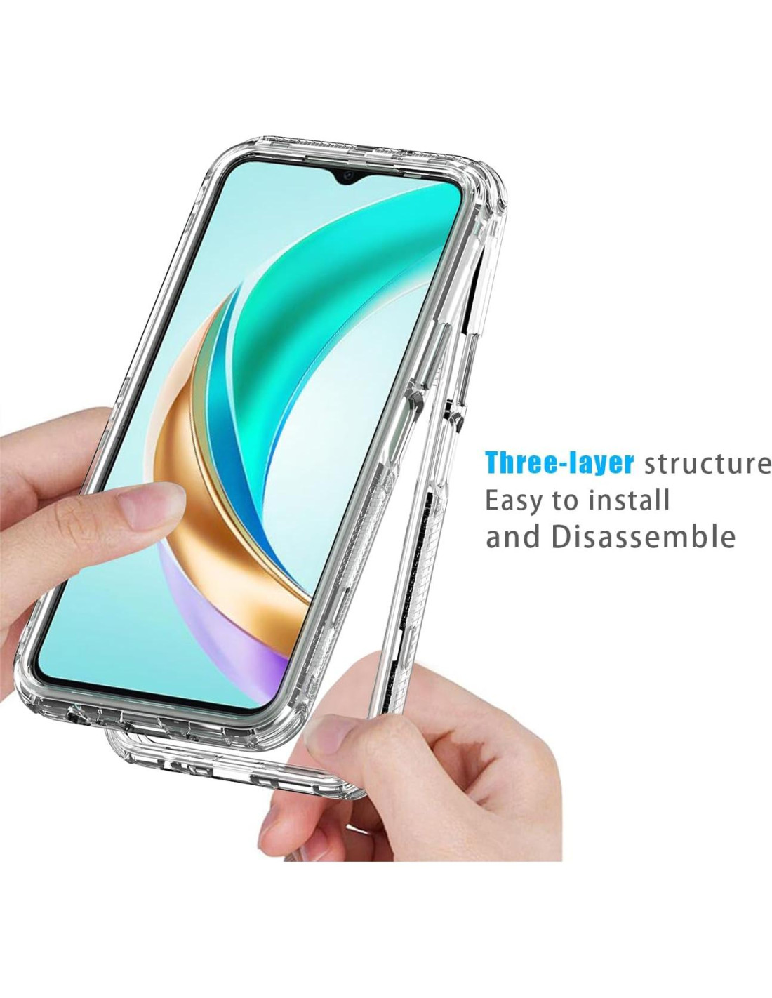 Compatibilidad: Compatible con Honor X6b 6.56" JDY-LX1 JDY-LX2. Por favor, elige la funda correcta antes de comprarla o puedes hacerme una pregunta en "¿Tienes una pregunta?" [Material] : Construcción de 3 en 1 Armor, carcasa interna y cubierta exterior de TPU suave, ofrecen protección de doble capa. [NOTA: NO incluye cubierta frontal / NO incluye protector de pantalla de 3 parte] [Protección de alta resistencia] : La protección de alta resistencia mantiene tu teléfono seguro de caídas y golpes. TPU de alta calidad resistente a impactos proporciona una protección y control superiores para el teléfono. [Protección Rugged de Cuerpo Completo 360] : Diseño integrado único en la parte delantera y trasera proporciona protección robusta y completa para tu dispositivo, protegiéndolo de caídas, rasguños e impactos, lo que lo hace ideal para actividades al aire libre y aventureras. [Diseño Transparente] : Los materiales transparentes muestran la belleza natural de tu teléfono, la cubierta trasera clara te permite insertar fotos para un aspecto personalizado, es un regalo perfecto para chicas, mujeres, amigos y familiares. Compatible con: 1 x Funda Honor X6b 1 x Protectores de Pantalla de Vidrio Templado HD