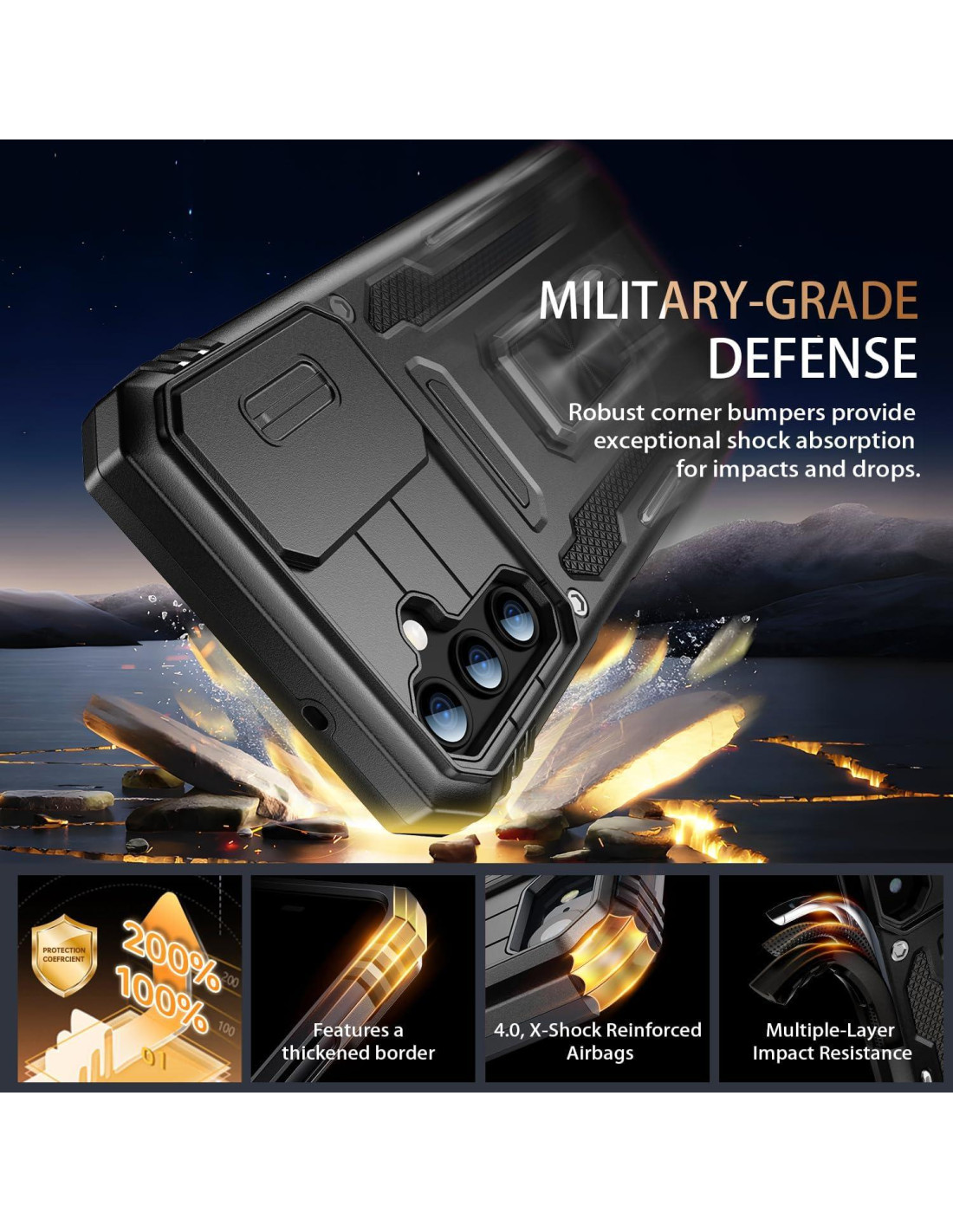 - Características especiales: Protección de Grado Militar, Ajuste Delgado, Soporte, Cubierta de Acabado Mate, Duradera