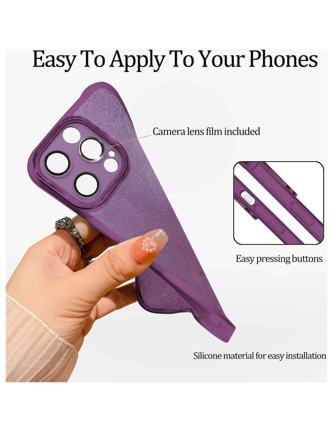 - Diseño claro y con brillo: La funda clara con papel de brillo removible hace que su teléfono se vea más atractivo y brillante, o puede elegir usarla sin el inserto de papel de brillo