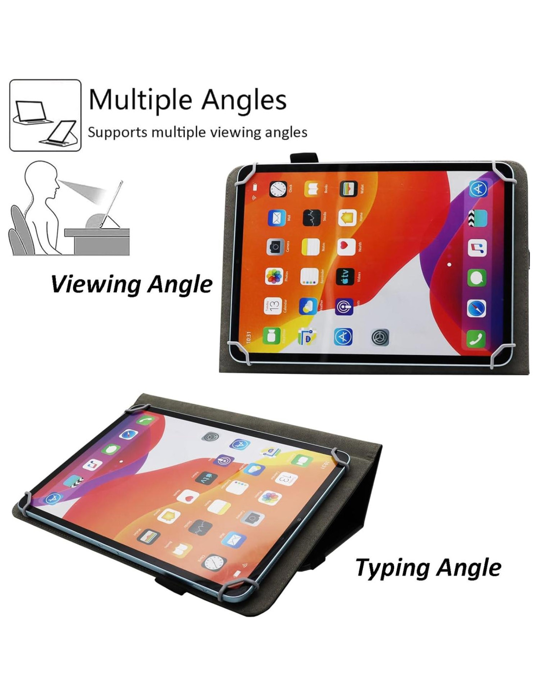 Funda universal para tabletas de 9.6 9.7 10 10.1 10.2 10.4 10.5 pulgadas. Hecha de cuero sintético, proporciona protección total contra suciedad, rasguños y otros daños diarios. Con dos ángulos de visualización cómodos: ángulo de visualización y ángulo de escritura. Ranuras para tarjetas integradas para poner su tarjeta de crédito / tarjetas de visita mientras está en movimiento. La correa de mano interior le brinda una experiencia de uso cómoda con una sola mano. Proporciona protección total contra suciedad, rasguños y otros daños diarios. Asegura el cierre de la funda, mantiene su tableta segura y conveniente. La correa de mano interior le brinda una experiencia de uso cómoda con una sola mano.