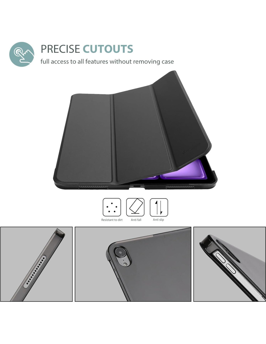 - Características especiales: Ligera, Auto Sueño, Antideslizante, Soporte de Doble Ángulo, Antihuellas, Compatible con Carga Inalámbrica, Cierre Magnético