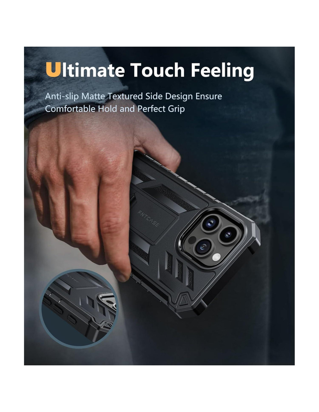 - Soporte incorporado: Esta funda para iPhone 15 Pro Max está diseñada con un soporte incorporado que te permite mirar tu teléfono desde un ángulo cómodo, tanto horizontal como verticalmente, sin el problema de una parte trasera abultada