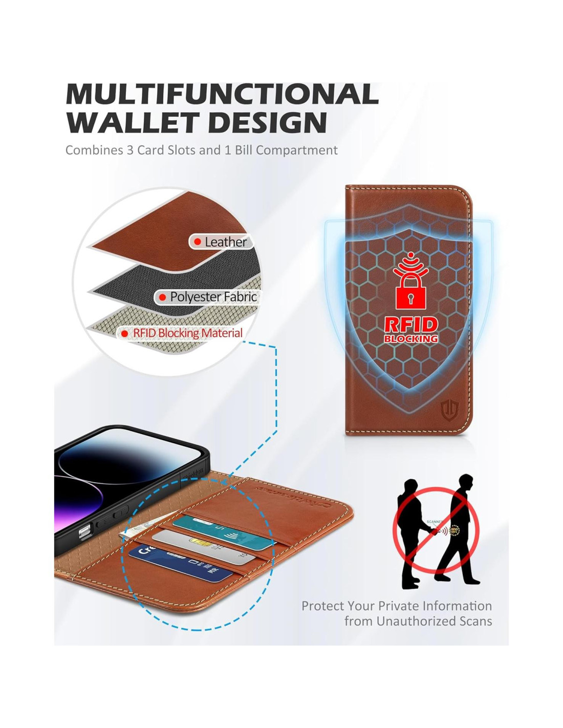 - Características especiales: Protección de Alta Resistencia, Bloqueo RFID, Protector de Cámara