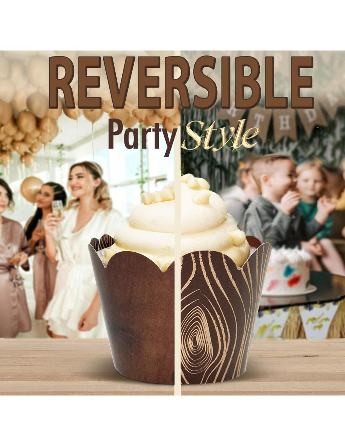 - Decoración rápida de cupcakes - NO PARA HORNEAR. ¡Envuelve un cupcake para una mejora instantánea! El diseño chic y reversible de grano de madera es una decoración impresionante para una elegante boda al aire libre, un baby shower nupcial con temática de naturaleza o una fiesta de cumpleaños de animales del bosque. También es genial para viajes de camping o caza, fiesta country western para un vaquero o vaquera, baby shower neutro o incluso un evento de graduación. Estas fundas de comida con estilo de grano de madera facilitan la organización de fiestas que tanto adultos como niños disfrutarán.