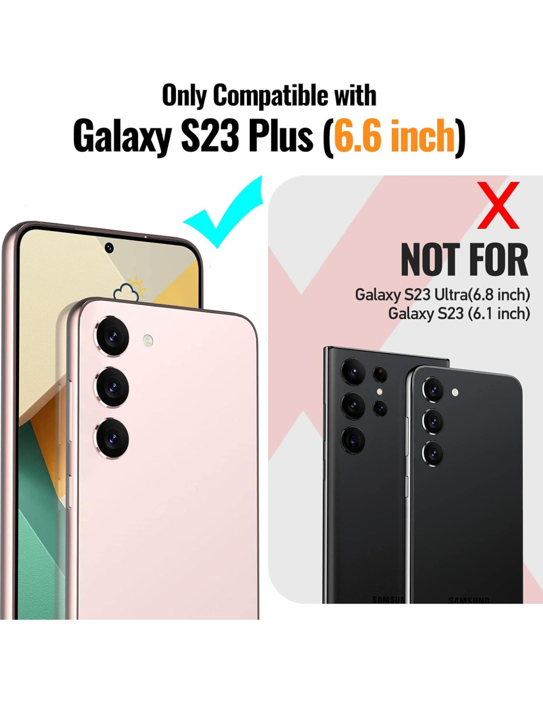- Compatible con Samsung Galaxy S23 Plus: Solo para Samsung Galaxy S23+ (6.6 pulgadas). Soporta Carga Inalámbrica.