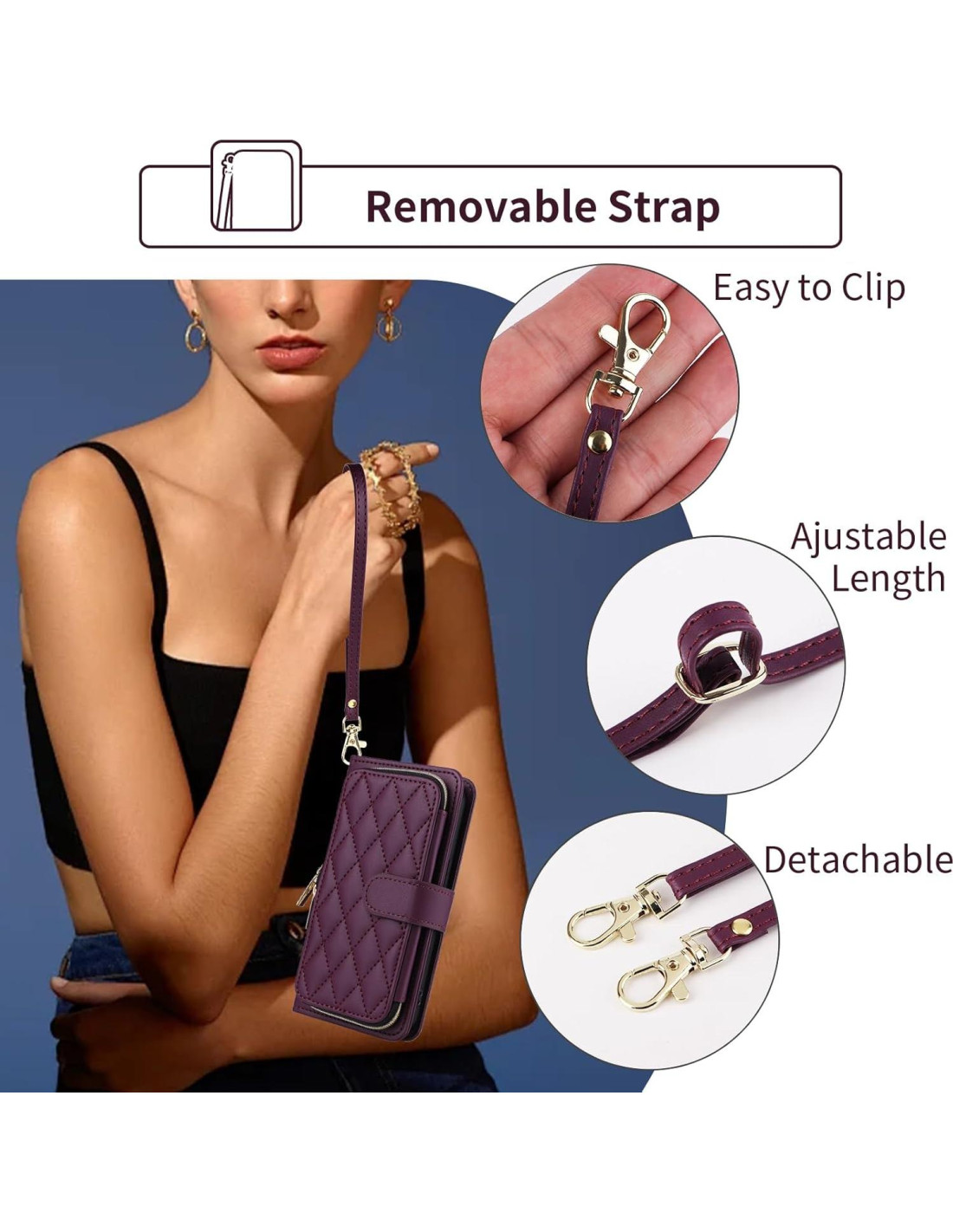 - [Correa Desmontable y Cremallera Exquisita] : La Correa de Muñeca y la Correa de Hombro Cruzada mantienen tu teléfono cerca sin perderlo y la Cremallera Exquisita mantendrá todas tus pertenencias a salvo.