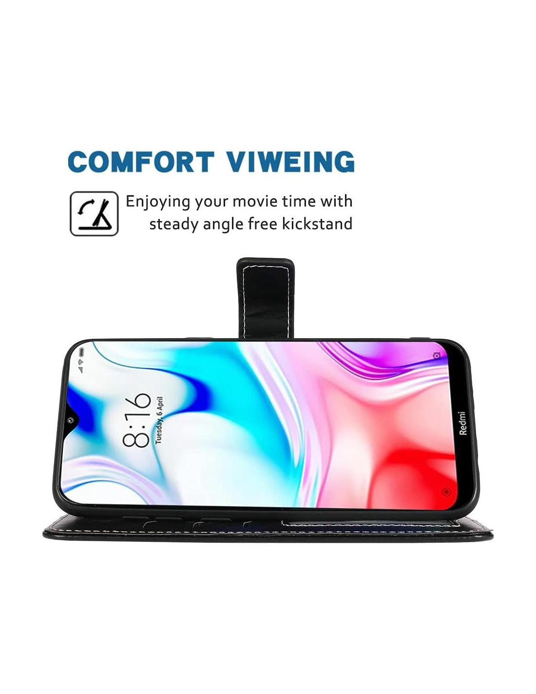 " [Modelos Compatibles] : Solo compatible con Xiaomi Redmi 8 / Redmi 8A, NO compatible con otros dispositivos. [Cortes Precisos] : Cortes precisos para altavoz, cámara, flash y otros puertos funcionales, permiten acceso a todos los puertos y funciones fácilmente, sin quitar la funda. [Función del Teléfono] : Las fundas de cartera para Xiaomi Redmi 8 8A incluyen 3 ranuras para tarjetas, 1 bolsillo para dinero, 1 con ventana para colocar tu foto favorita, acceso completo a cable/botón/altavoz, un cierre magnético y un soporte en paisaje. [Característica] : Nuestra funda de cuero es duradera y resistente, reduce o mitiga fácilmente rasguños, astillas y golpes, permitiendo que tu teléfono luzca nuevo por más tiempo. La duradera funda interior de TPU suave de cuerpo completo asegura tu teléfono contra caídas y golpes."