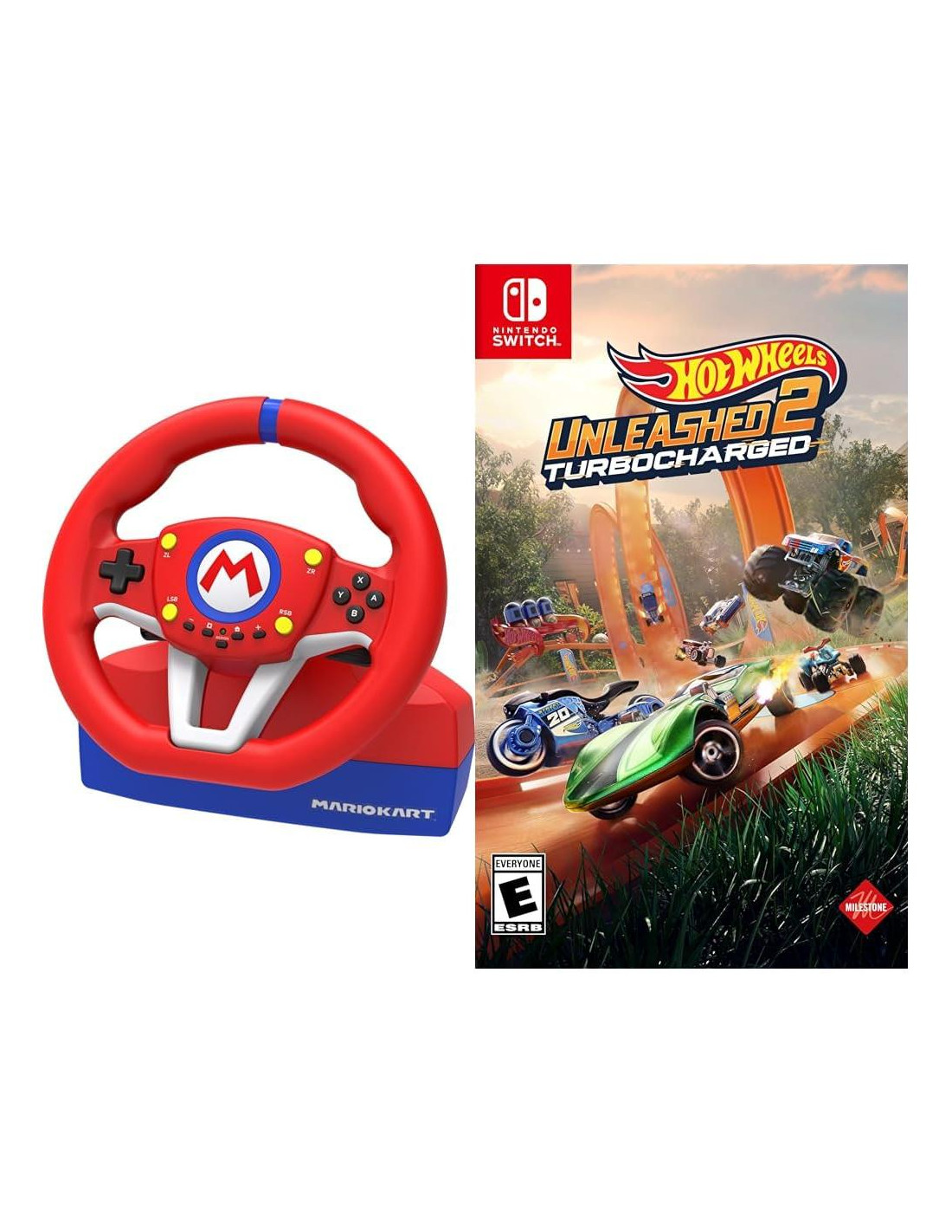 Hori Nintendo Switch Mario Kart volante Pro mini Por - Licenciado Oficialmente Por Nintendo Hori se complace en anunciar el volante de carreras Pro mini de Mario Kart para Nintendo Switch. Este volante es ideal para los jugadores de Mario Kart y carreras. El diseño ergonómico del volante, los pedales y los controles a bordo convenientes fueron construidos para crear una simulación de carreras auténtica. Licenciado Oficialmente Por Nintendo. Hot Wheels Unleashed 2: Turboalimentado - Nintendo Switch ¡LO HICIMOS OTRA VEZ! Si pensabas que el primer capítulo fue increíble, prepárate porque te sorprenderemos con características nuevas e increíbles. MÁS VOLANTES PARA TU DIVERSIÓN - Primero lo primero: haz espacio en tu estante virtual, porque puedes acceder a más de 130 vehículos y aún más variedades. Sí, no solo Hot Wheels Originals, sino también Hot Wheels Monster Trucks y vehículos del mundo del entretenimiento. Ahora también puedes montar motocicletas y ATVs, cada uno con su propio estilo de carrera único para enfrentar cada pista de la manera más estratégica. Un nuevo sistema definirá la categoría de los vehículos, que se puede mejorar con el árbol de habilidades dedicado que afectará directamente su rendimiento. ¡Mira cómo tu auto se vuelve imparable! NUEVAS LUGARES PARA LLAMAR HOGAR - Ya sea el patio trasero de una casa en los suburbios o un mini-golf en un pueblo del Viejo Oeste, tus pistas estarán rodeadas de los entornos más impresionantes. Descubre 5 nuevas ubicaciones, domina sus secretos y te sentirás como en casa tanto allí como en el podio. Nuevos terrenos son otra entrada fantástica que hará que tus carreras sean aún más emocionantes y desafiantes. El césped, la arena y más afectarán directamente el manejo del vehículo, algo a tener en cuenta al elegir tu viaje. ¡La estrategia juega un papel aún más importante ahora! MUESTRA TUS MOVIMIENTOS - Antes de impresionar a tus oponentes con una gran victoria, déjalos sin palabras con nuevos movimientos locos. Además de Deriva y Aceleración, ahora puedes mostrar tu Dash Lateral y Salto Simple o Doble. Úsalos sabiamente y en el momento adecuado para chocar con tus rivales y sacarlos de la pista... o simplemente para evitar esas barreras. Y con los nuevos Saltos puedes adelantarte al tráfico y también encontrar nuevos atajos secretos.