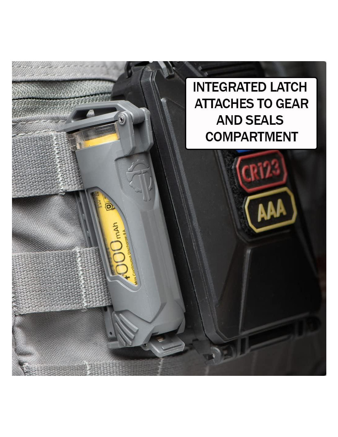 - MANTENIMIENTO DE BATERÍAS CRÍTICAS SEGURAS Y ACCESIBLES: El estuche de baterías CellVault-21 se sujeta de forma segura al equipo y proporciona acceso rápido a las baterías para que puedas mantener las linternas premium operativas; Las baterías recargables y desechables de litio necesitan ser protegidas para evitar daños o drenaje prematuro de energía; El CellVault-21 sostiene una batería recargable 21700 con un amortiguador de choque de espuma de silicona no conductora que protege la batería y reduce la firma de ruido; NO SE VENDEN BATERÍAS CON EL PRODUCTO