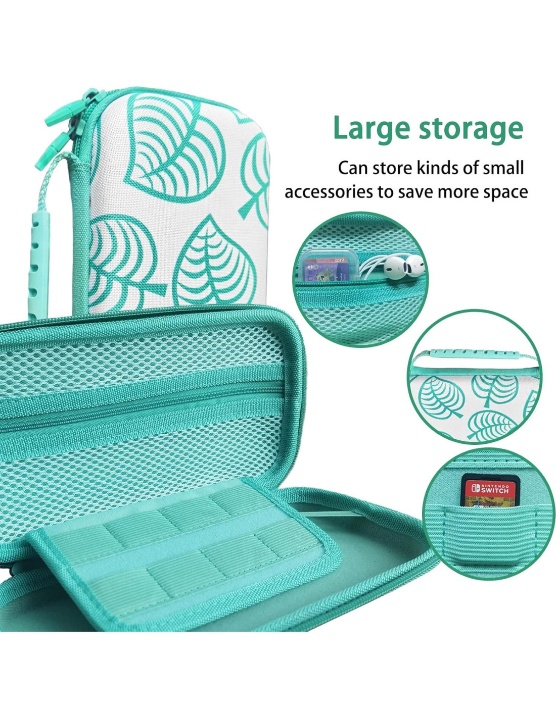 - [Gran almacenamiento] El bolsillo interior con malla densa proporciona un gran almacenamiento para gadgets necesarios como Joy-Cons, cables, auriculares, y no interfiere con la consola cuando está cerrada.