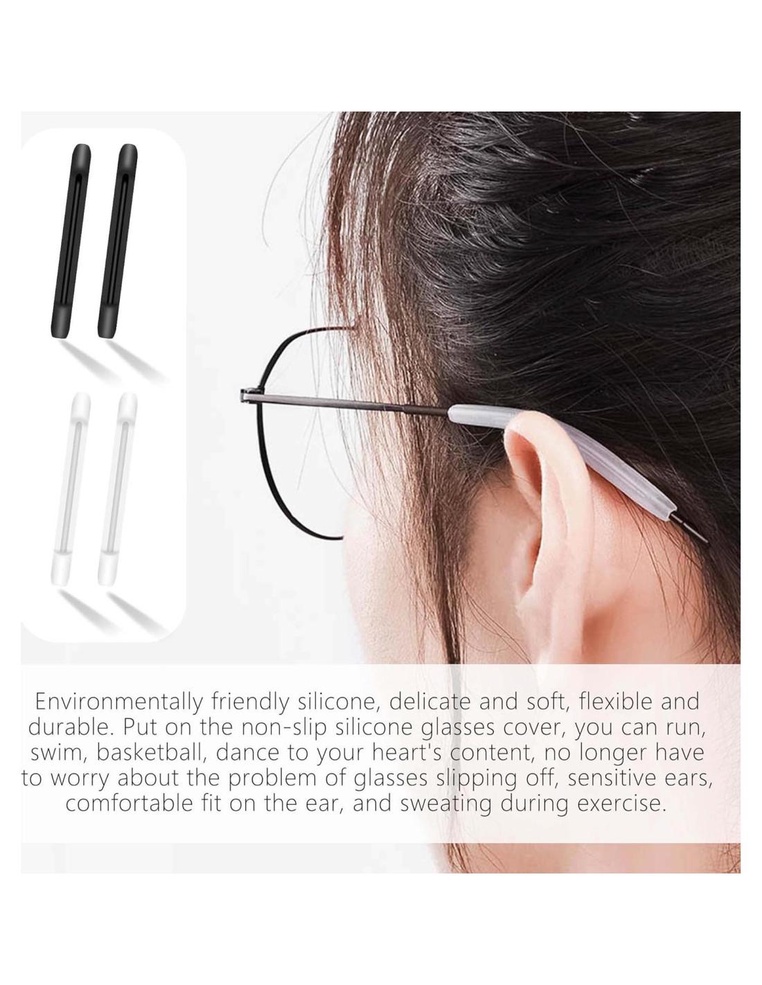- Amplia gama de aplicaciones: no importa si eres adulto o niño, estudiante o persona mayor jubilada, hombre o mujer, mientras necesites usar gafas, cuando estés haciendo deportes, estudiando, trabajando, leyendo periódicos, etc. Este gancho para orejas puede evitar que las gafas se deslicen de tu nariz, te hace más comprometido y concentrado. Libera tus manos, ¡no necesitas empujar tus gafas una y otra vez! Adecuado para la mayoría de las gafas, gafas de sol, gafas de lectura, etc. Sin sensación de dolor después de usar.