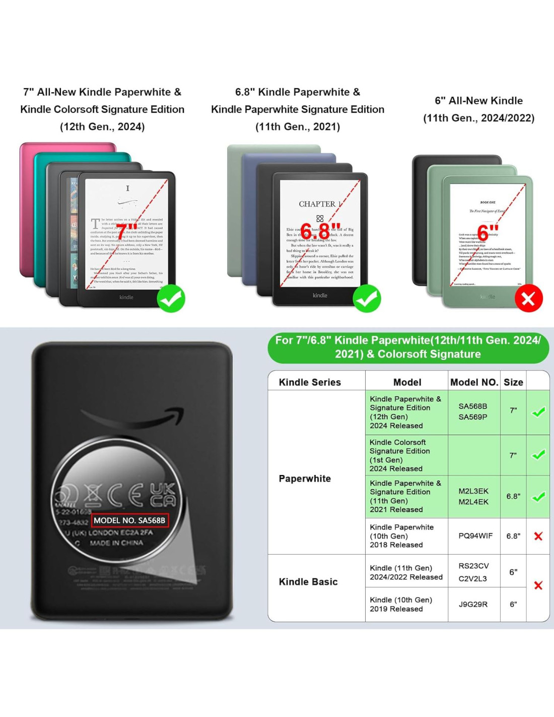 - Compatibilidad: Diseñada exclusivamente para Kindle Paperwhite (12/11 Generación, 2024/2021) de 7"/6.8" de Amazon y Kindle Colorsoft Signature Edition 2024. No es compatible con otros dispositivos Kindle