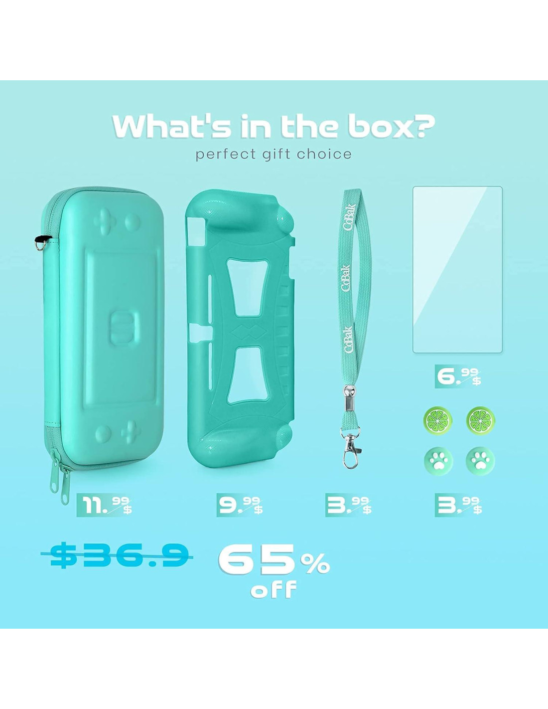 - El Paquete Incluye: 1x Funda CoBak para Nintendo Switch Lite, 1x Protector de Pantalla, 1x Funda de Agarre, 4x Tapas de Pulgar.