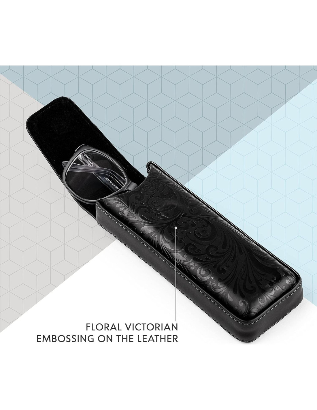 - El estuche para gafas está meticulosamente hecho a mano con cuero PU de alta calidad, cosido con hilo resistente, embellecido con un hermoso ornamento.