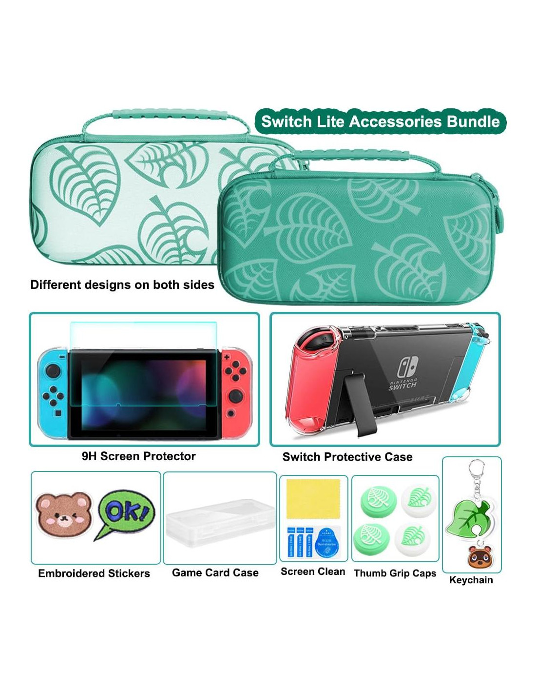 - Paquete de Accesorios Esenciales para Switch: Kits de accesorios para Switch incluyen funda de transporte para Switch (para almacenamiento diario y viaje), funda transparente para Switch acoplable, protector de pantalla para Switch, soporte para estuche de juegos de Switch, 4 cubiertas para joystick, llavero lindo, 2 pegatinas.