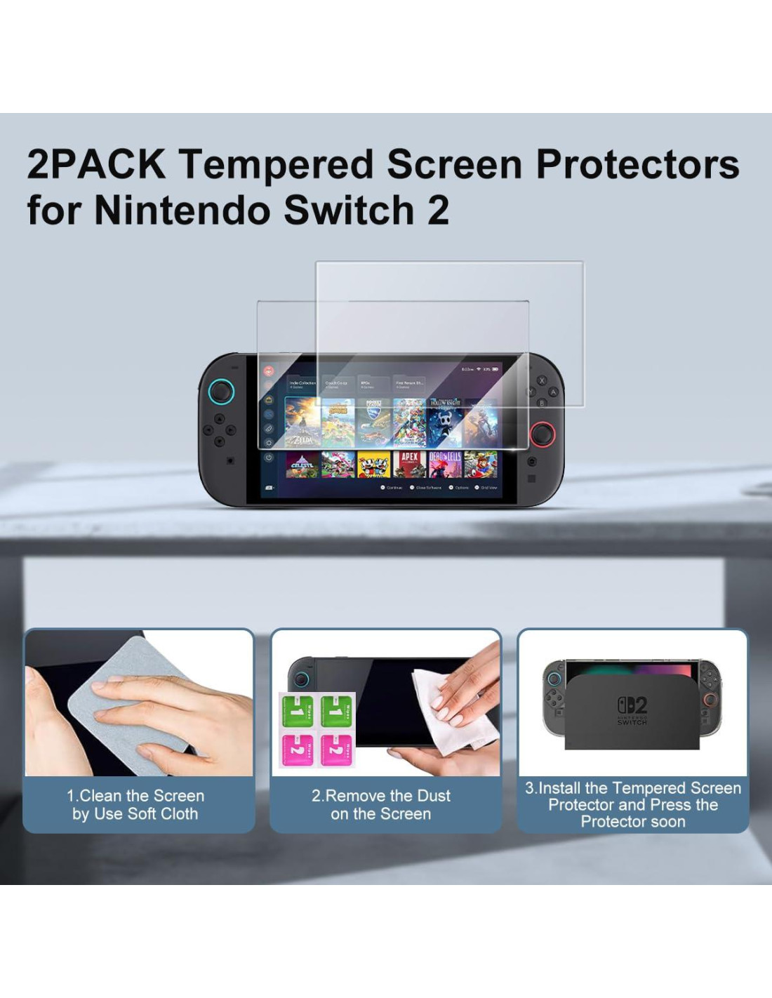 - [Protector de Pantalla Templado] : Protector de pantalla templado HD anti-huellas, diseño super delgado y resistente, proporcionamos 2 protectores de pantalla templados, no solo protegen tu pantalla de romperse sino también protegen tus ojos, toque sensible para controlar tus juegos de Switch 2