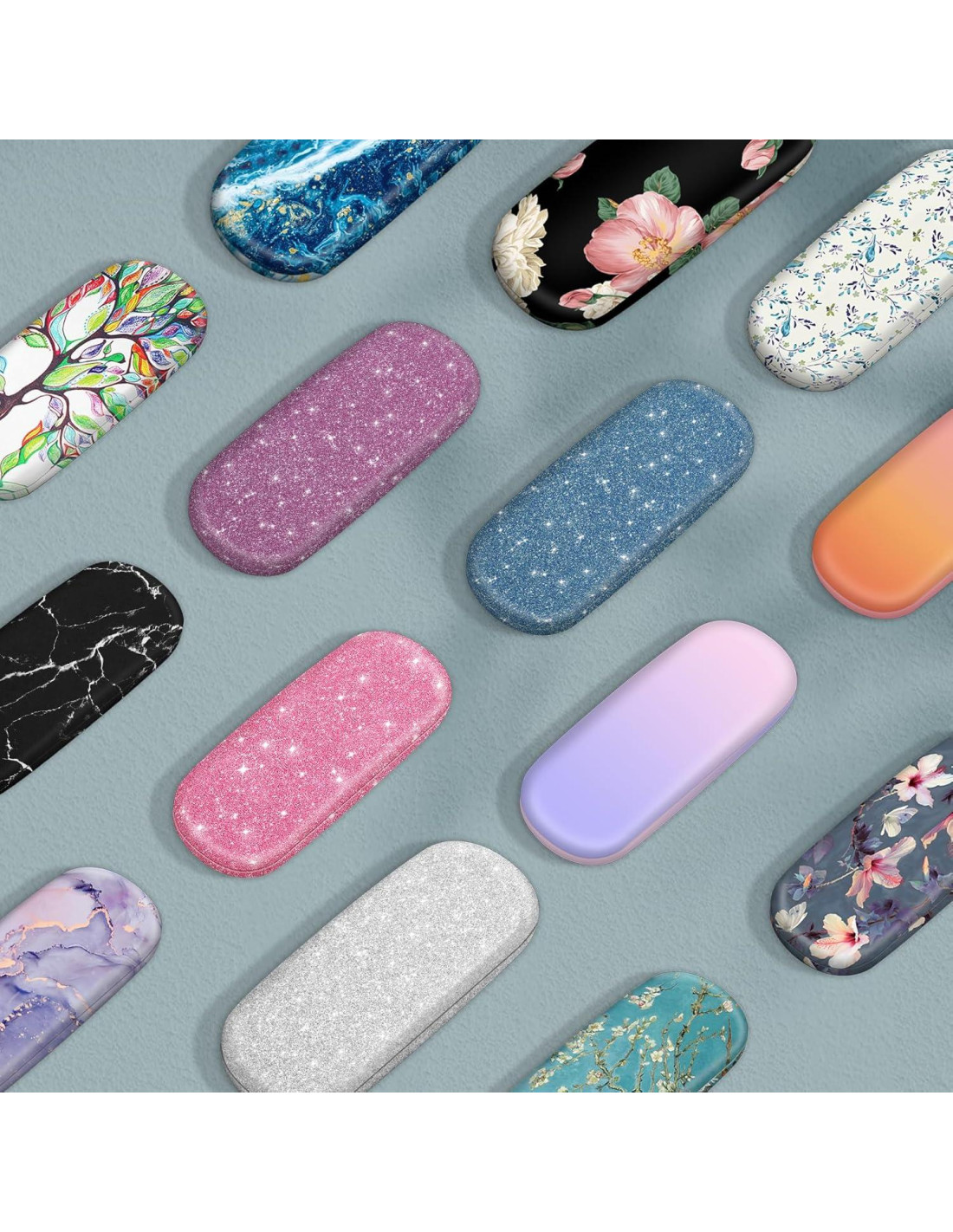 - Exterior de cuero vegano premium y suave interior de microfibra protegen las lentes de las gafas de rayones o roturas, y el marco de las gafas de doblarse o romperse. Diseños de moda vibrantes con suficiente espacio protegen tus gafas de lectura / gafas recetadas / gafas de computadora o gafas diarias con estilo.