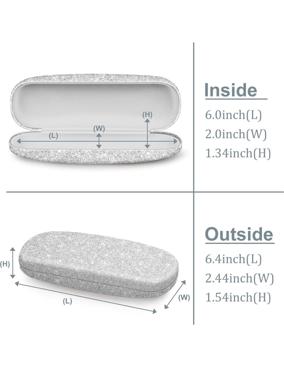 - La funda dura para gafas protege tus gafas caras, manteniendo tus gafas seguras todo el tiempo. La funda se adapta a la mayoría de las gafas de tamaño estándar. Y Dimensiones interiores: Longitud 6.0 pulgadas (15,24 cm) - Ancho 2.0 pulgadas (5,08 cm) - Altura 1.34 pulgadas (3,40 cm) / Dimensiones exteriores: Longitud 6.4 pulgadas (16,26 cm) - Ancho 2.44 pulgadas (6,19 cm) - Altura 1.54 pulgadas (3,91 cm).