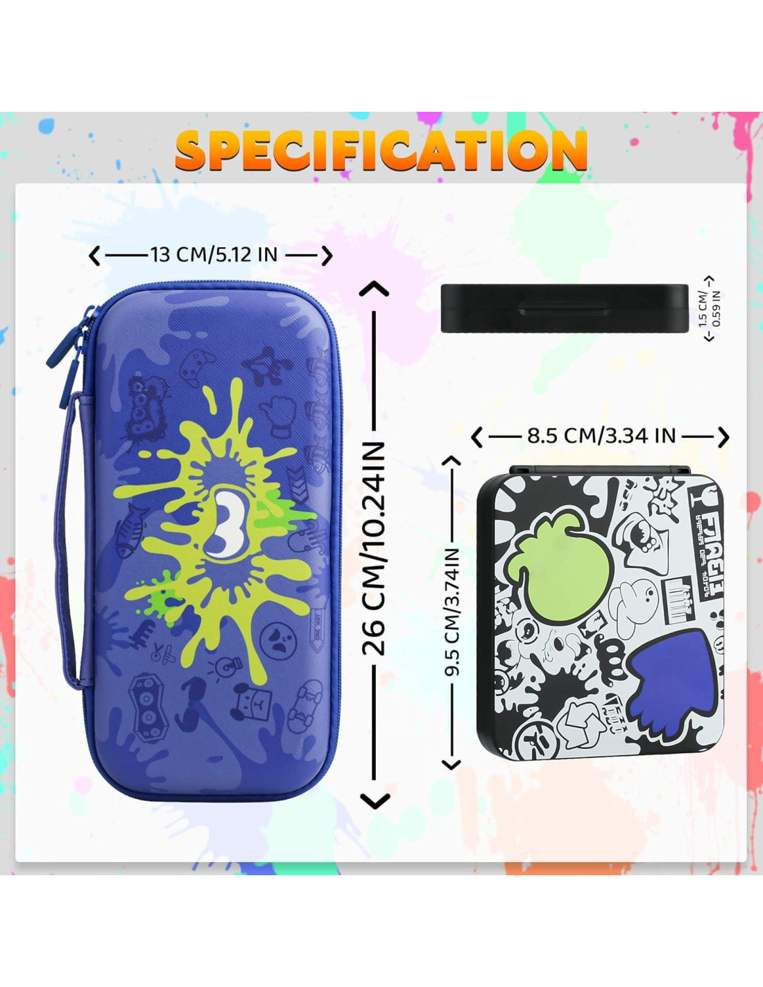 - Puedes Obtener Kit de Accesorios Temáticos para Splatoon 3, 1 x Funda de Transporte; 1 x Funda de Juego; 2 x Tapas de Agarre para Pulgar; y servicio al cliente amigable a largo plazo. Si tienes alguna pregunta, no dudes en contactarnos.