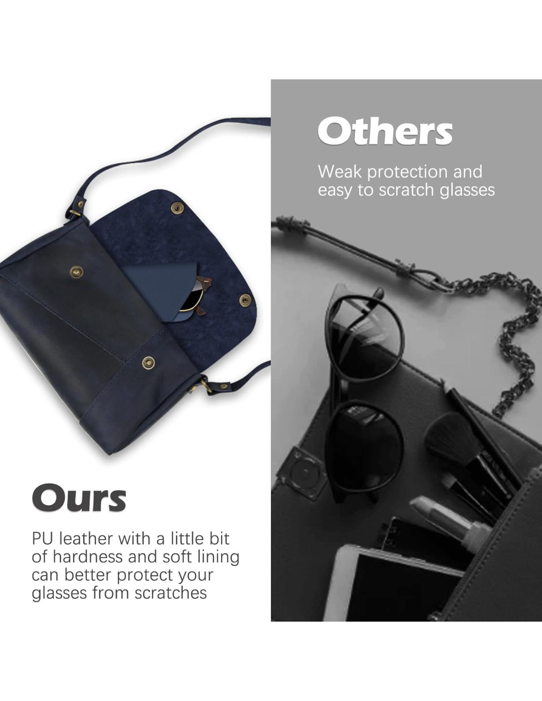 - [Uso Multifuncional]: ¡No solo para gafas! Usa las fundas de gafas de cuero PU para almacenar lápiz labial, perfume, auriculares, monedas. ¡Una verdadera solución todo en uno!