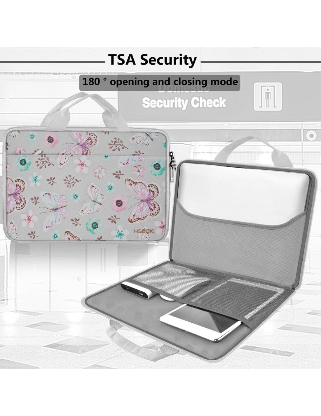 - Diseño de asa superior, la funda se puede abrir completamente a 180, delgada, portátil y ligera para llevar sola, o deslizarla en tu maletín, mochila u otra bolsa, perfecta para negocios, escuela o viajes.