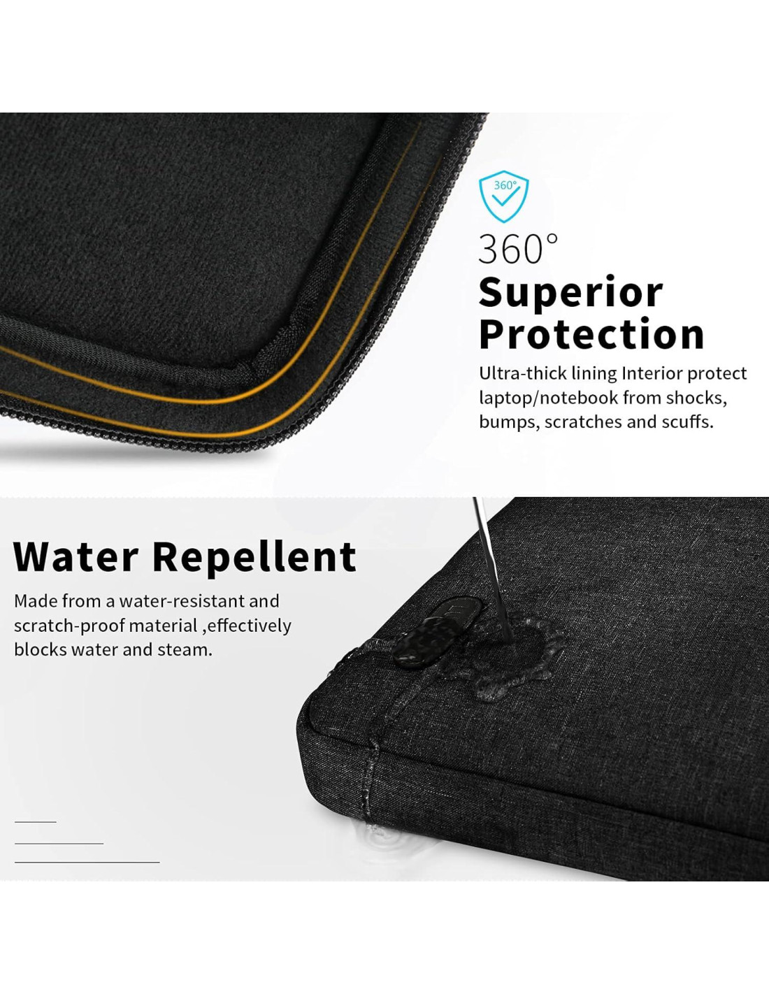 - [Protección Fuerte de 360 Grados] Esta funda para laptop está construida con material duradero y resistente al agua, el grueso forro de felpa suave interno proporciona a su laptop 360 grados de protección. La funda Lubardy también cuenta con 2 tiras de goma anti-colisión en las esquinas inferiores, que protegen más su dispositivo contra rasguños, abolladuras, golpes y choques.