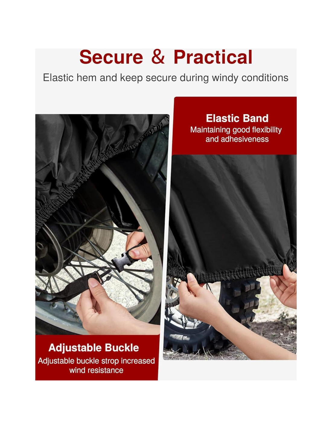- Ajuste seguro y ceñido: La funda para motocicleta Puroma está equipada con 4 tiras reflectantes nocturnas y una hebilla a prueba de viento. Nuestra funda para motocicleta se mantiene en su lugar, incluso durante vientos fuertes, manteniendo tu motocicleta segura y protegida. Las tiras reflectantes proporcionan mayor seguridad al ser altamente visibles en la oscuridad.
