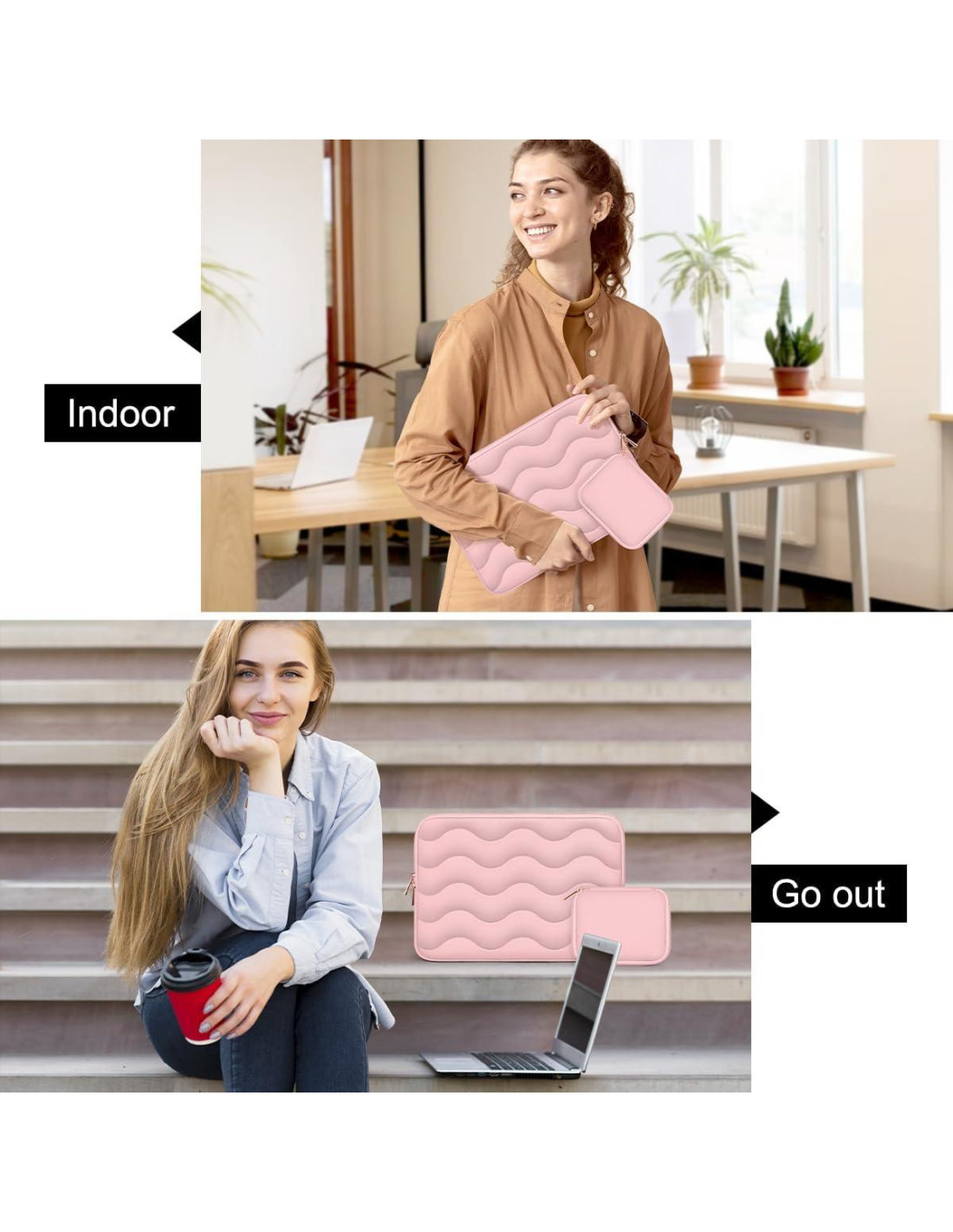 - Ligera y Portátil: No es voluminosa, se desliza fácilmente en tu maletín, mochila u otras bolsas de equipaje. Cuenta con un cierre superior duradero que se cierra suavemente alrededor de las esquinas, permitiendo un acceso fácil y rápido a tu computadora portátil.