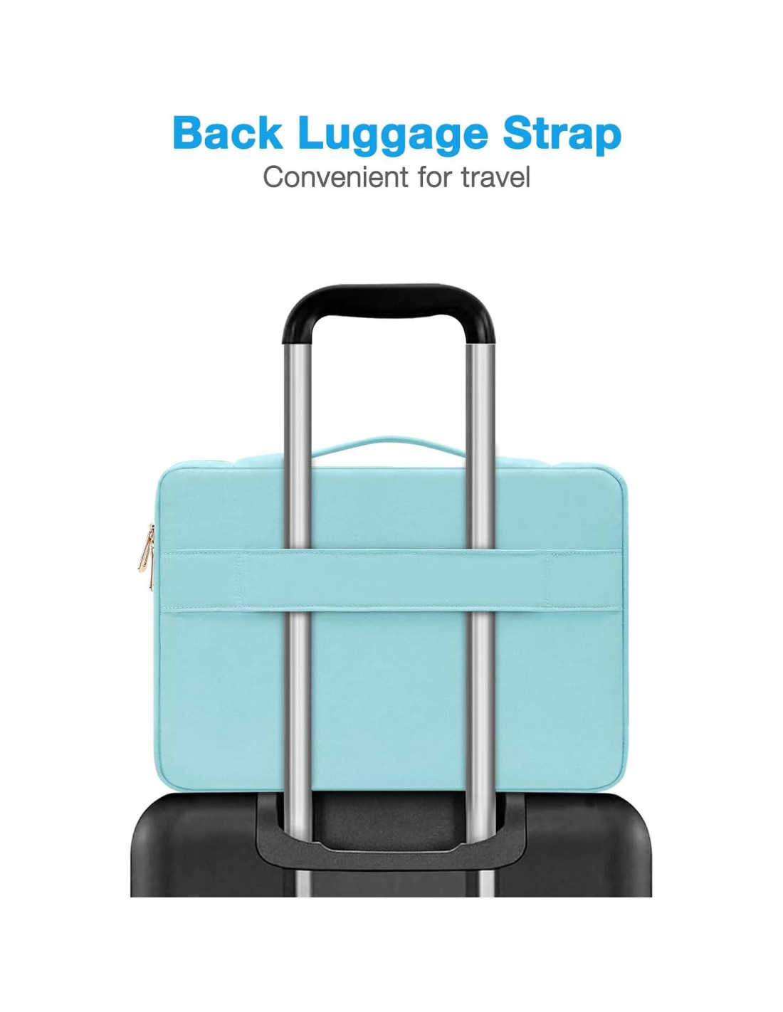 - El diseño considerado incluye un cinturón para maletas de trolley en la parte posterior para facilitar su uso durante viajes de negocios. Es realmente conveniente para tu feliz viaje a cualquier lugar. Delgada y ligera; no aumenta el volumen de tu laptop y puede deslizarse fácilmente en tu maletín, mochila u otra bolsa.