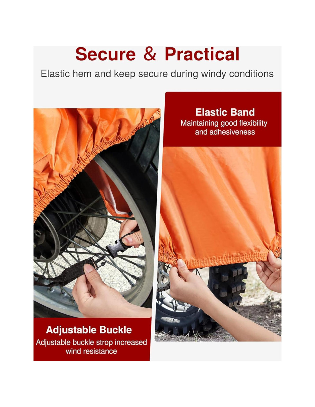 - Protección climática premium: Nuestra funda para motocicleta está hecha de tela de alta calidad 210D, que tiene un rendimiento impermeable excepcional. Esta funda proporciona protección contra la lluvia, la nieve, el polvo y los excrementos de aves, asegurando que tu motocicleta permanezca en excelente estado sin importar el clima.