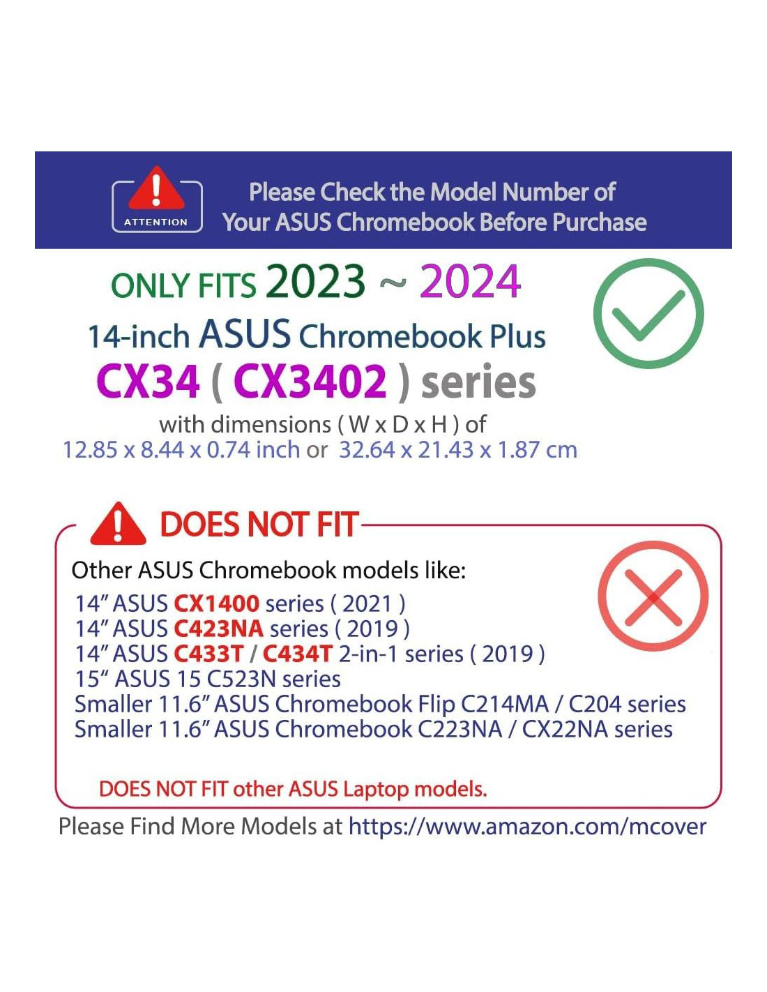 - Hecha de material de policarbonato translúcido de alta calidad que es a prueba de roturas y protegerá su 2023 ~ 2024 14-pulgadas ASUS Chromebook Plus Enterprise CX34 (CX3400) serie Computadoras Portátiles por completo