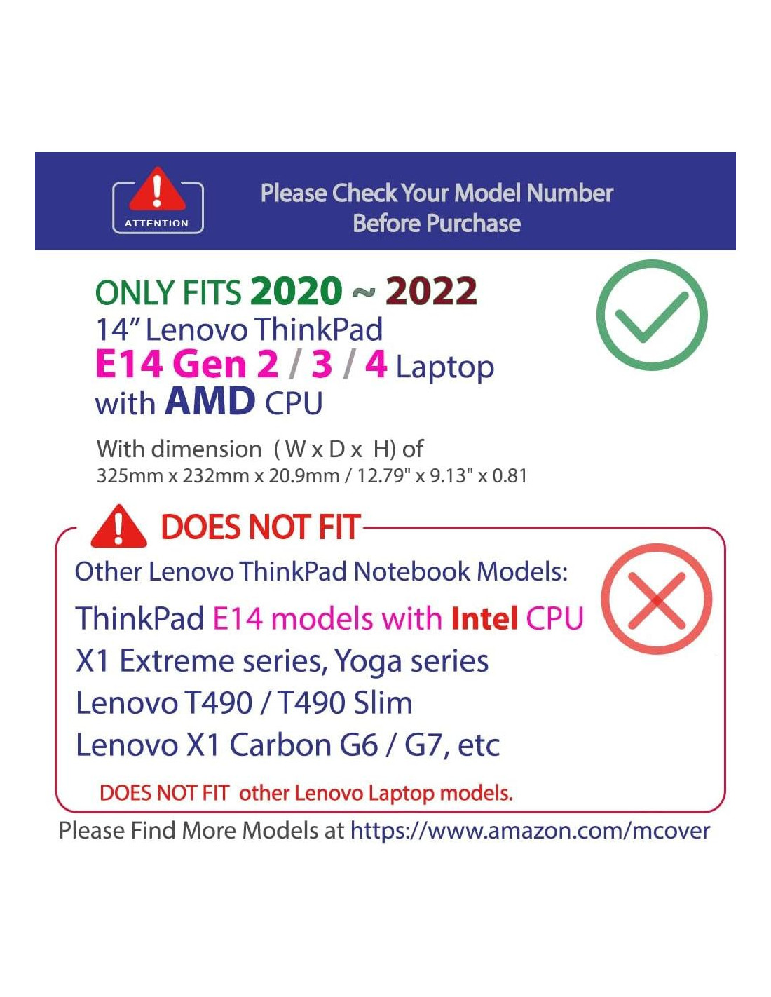 - Diseñado para ajustarse perfectamente a la computadora Windows 2020~2022 14" Lenovo ThinkPad E14 Gen 2 / 3 / 4 (con CPU AMD) con dimensiones de 12.76 x 8.66 x 0.7 pulgadas (324 x 220 x 17.9 mm).